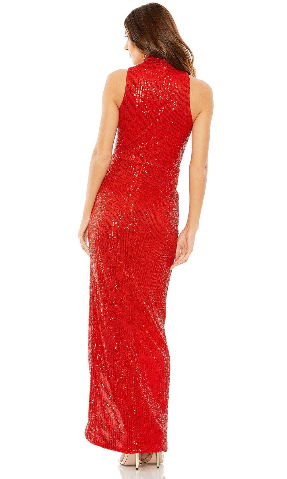 Experience lavish luxury while wearing this masterpiece by Ieena Duggal 27183. This sleeveless gown is a true show-stopper thanks to its all-over sequins adornment and ruched detailing. It boasts a high neckline with a keyhole cutout at the bust that adds a hint of allure. The full back has a center zipper closure to make the dressing effortless. To complete this design, the skirt skims to the full-length column silhouette and has a thigh-high slit that allows for graceful movement. This Ieena Duggal 27183 gown is a brilliant pick for any special party. Model is wearing Red color.