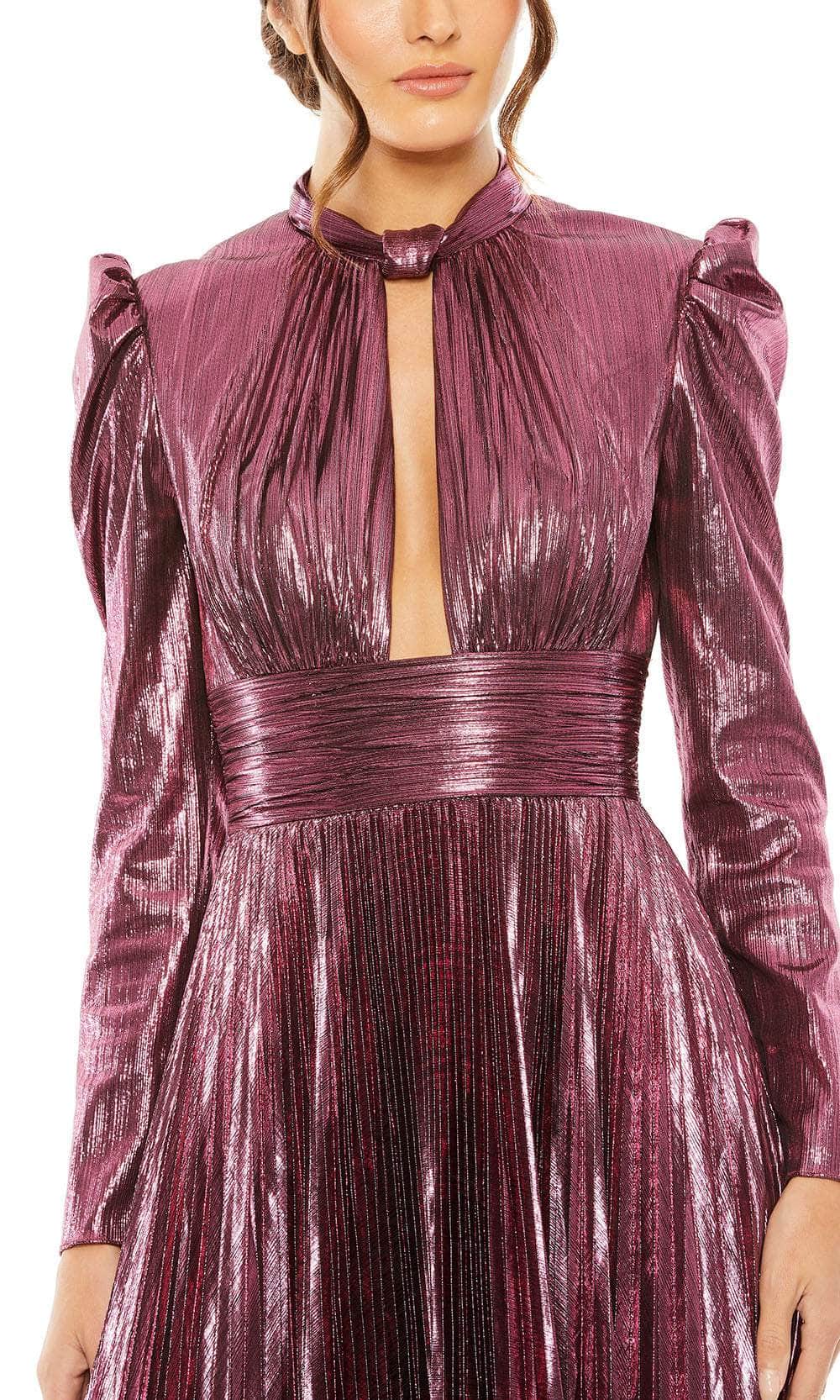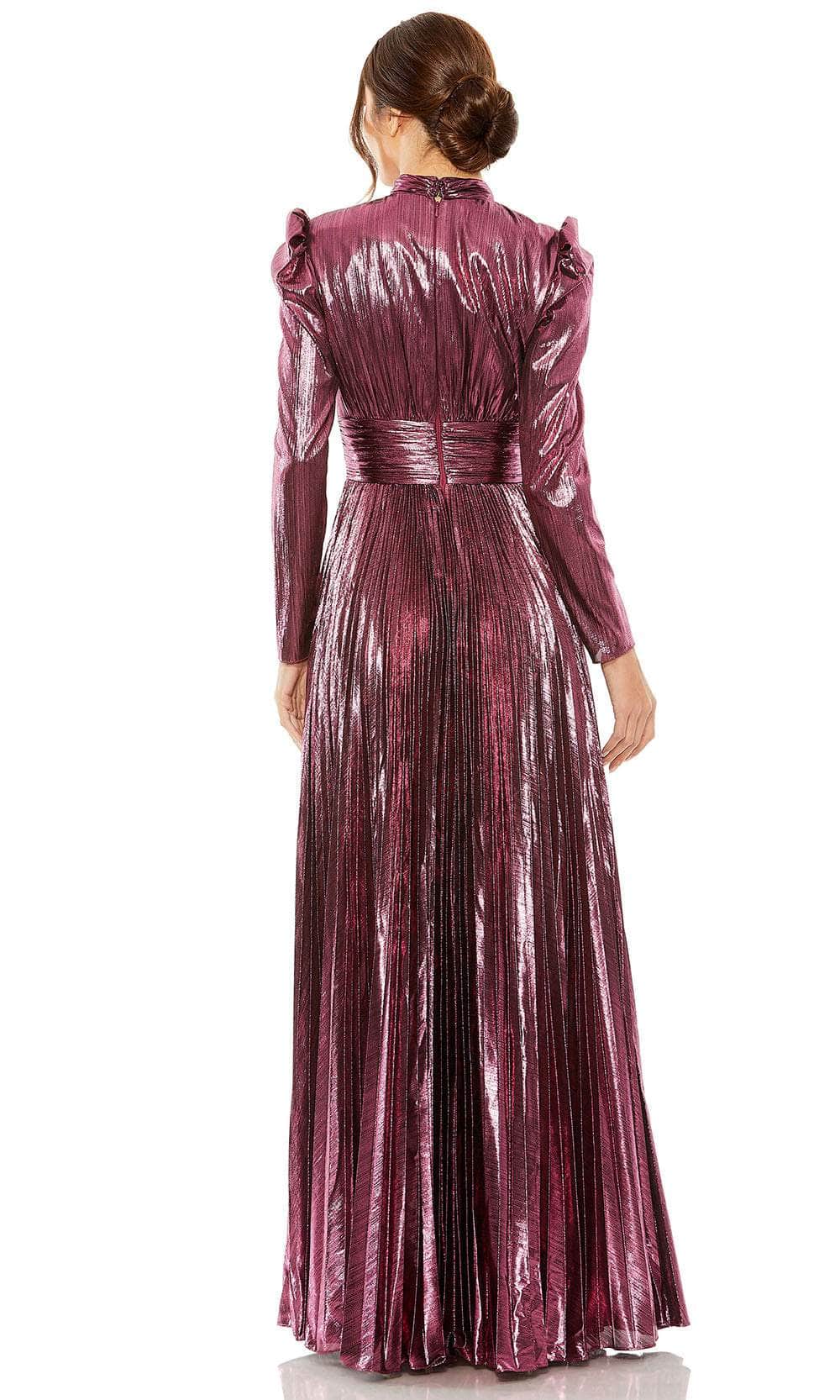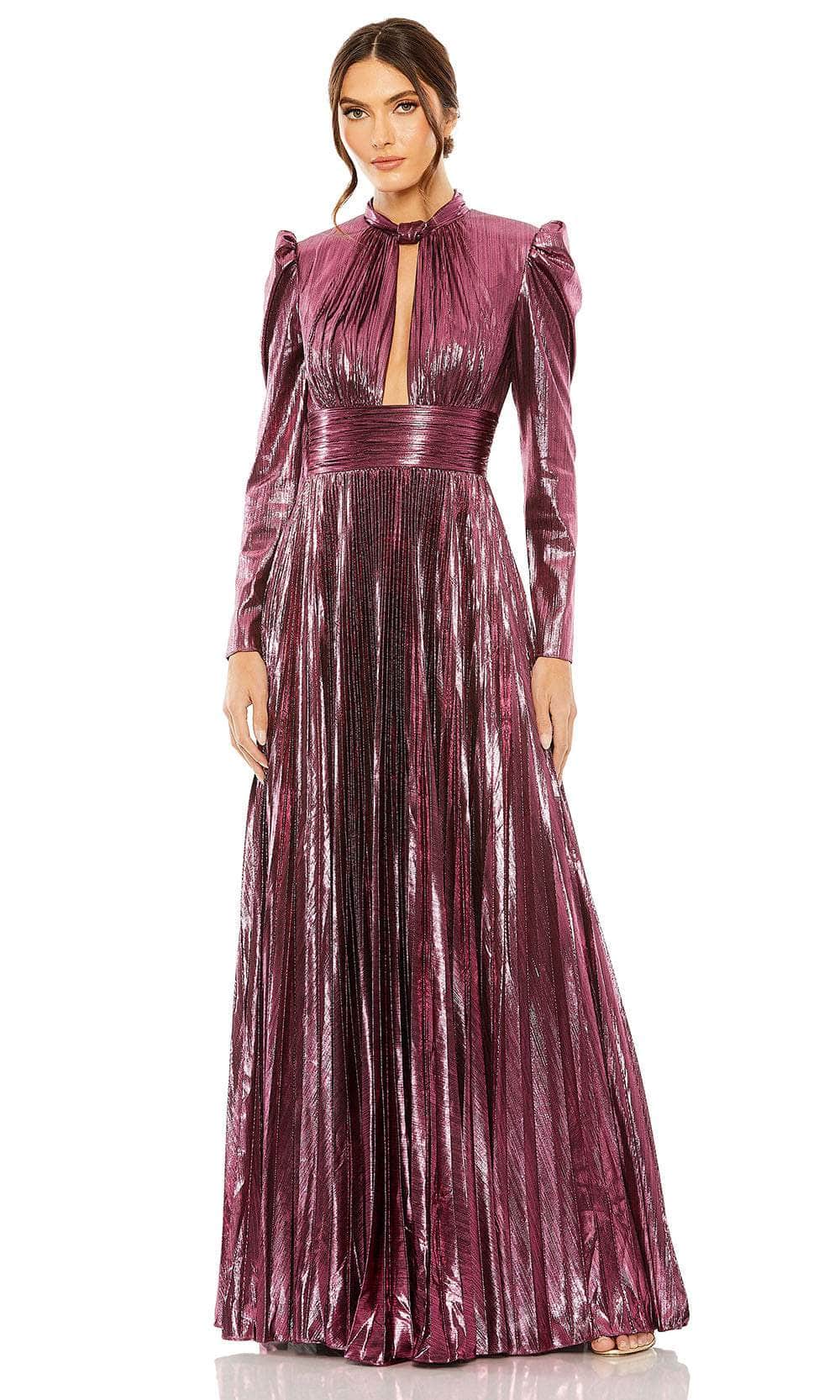 Make an impressive entrance in this luminous creation from Ieena Duggal 30758. This gown is an extravagant stunner with is metallic fabric and knotted detail in the high neckline. In addition, the keyhole cutout in the mid-bust and long puff sleeves adds glamour. The sophisticated back is fully covered with a clasp and zipper closure. To accentuate your figure, it has a ruched wide waistband. Carved in an A-line silhouette, the full length skirt is designed in accordion pleats for added style and volume. Clothe yourself in creative couture with this Ieena Duggal 30758 gown. Models are wearing Antique Gold, and Rose colors.