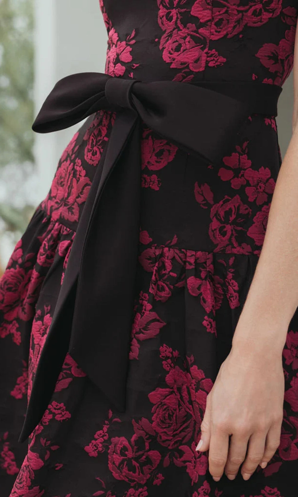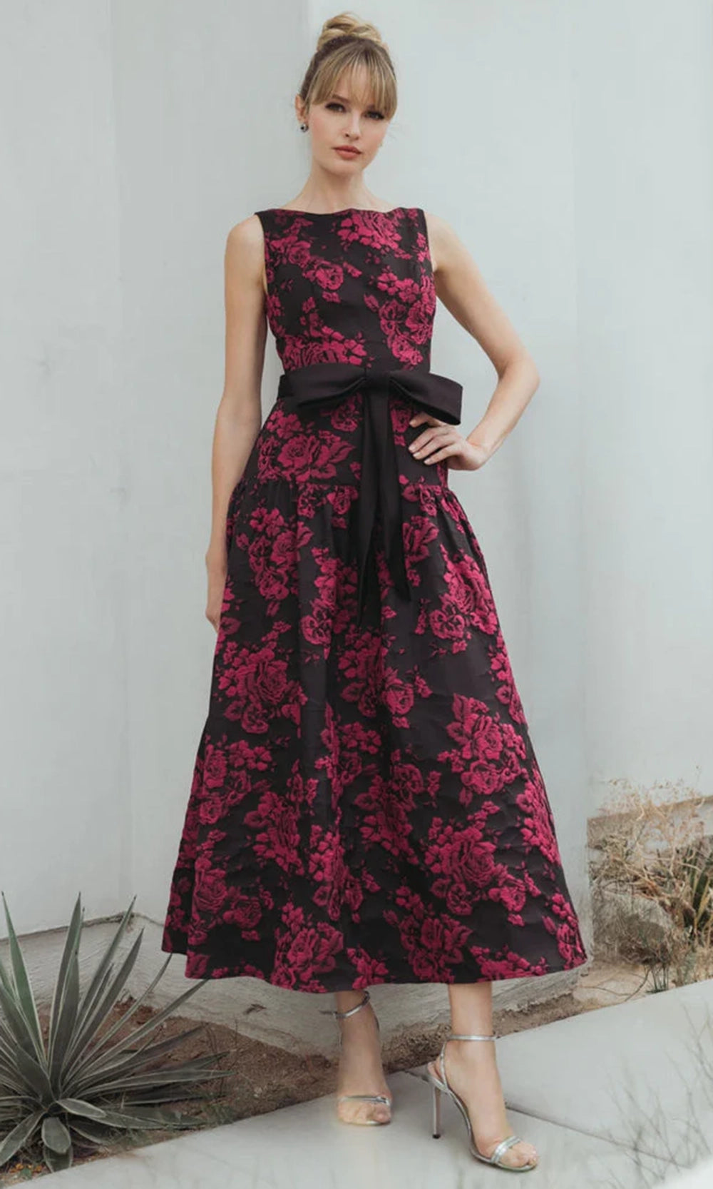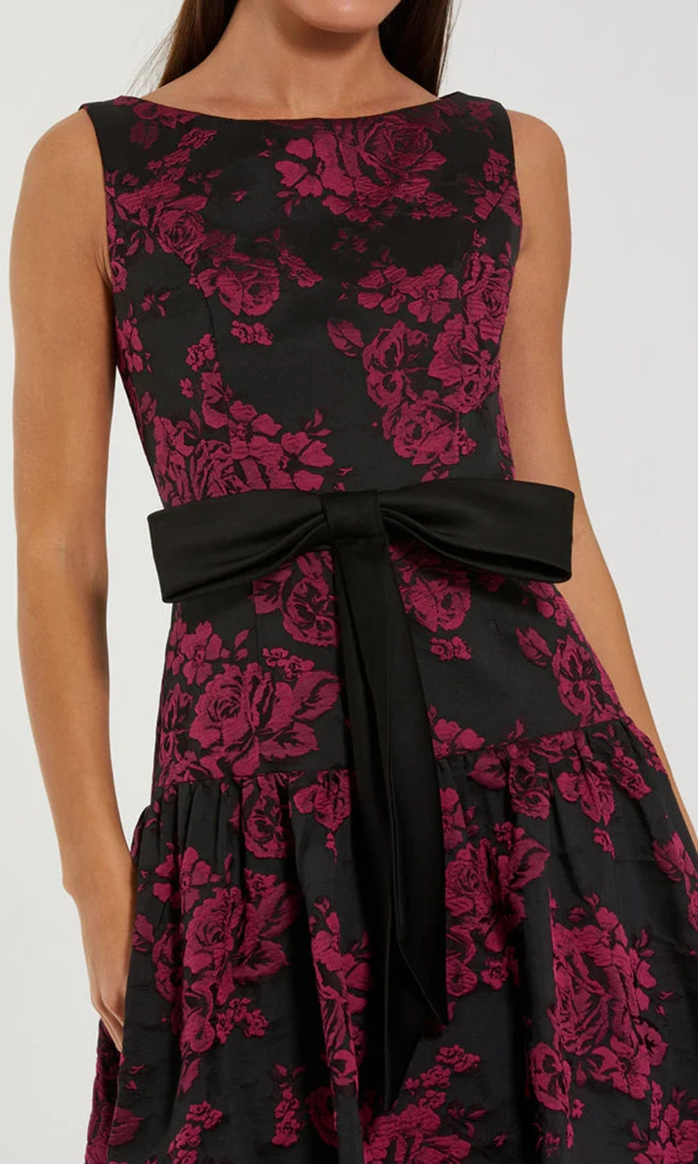 | Details: | Sleeveless, Satin Bow, Textured Floral, Closed Back, Concealed Back Zipper |