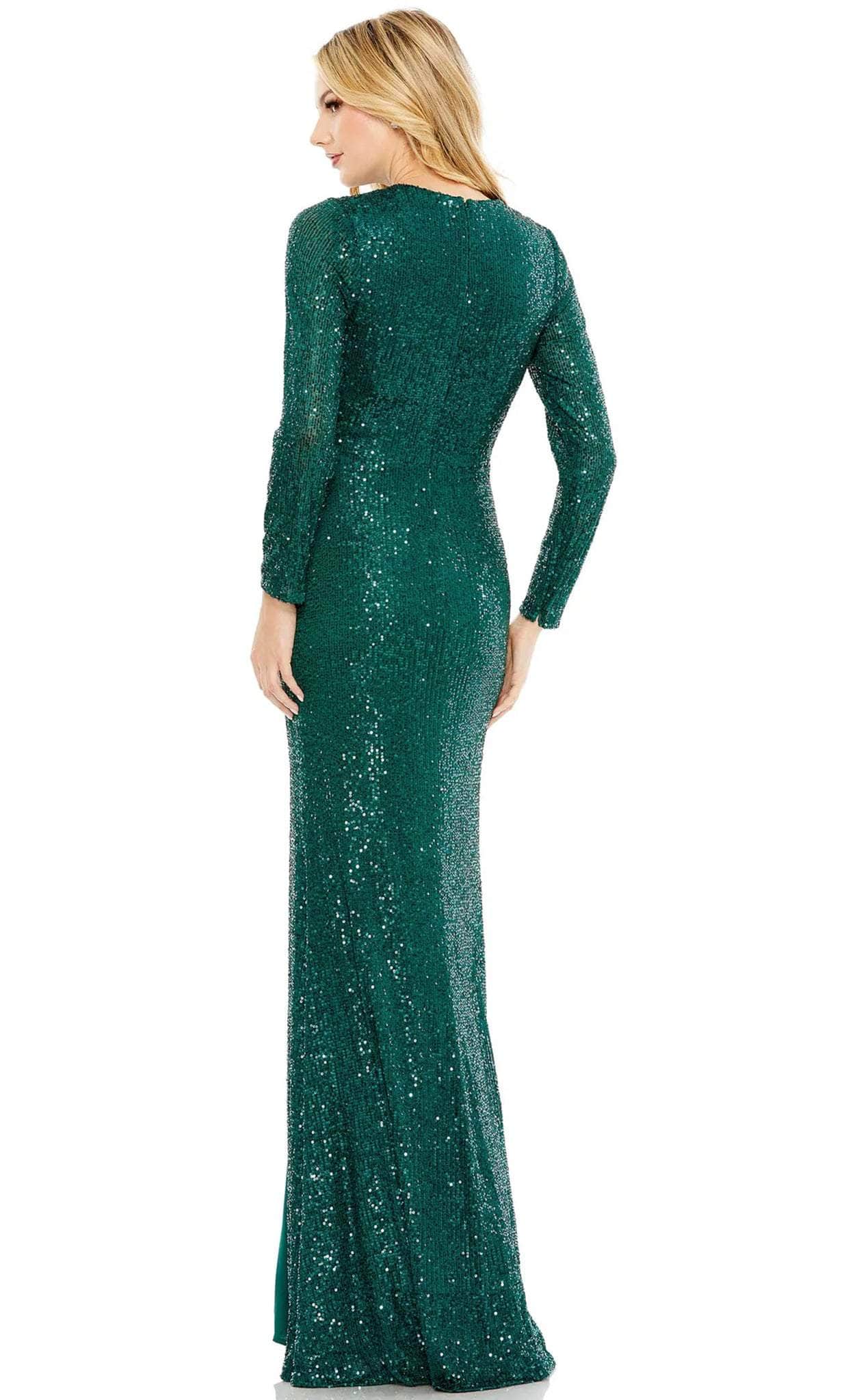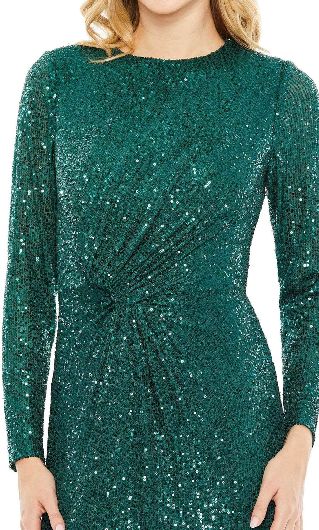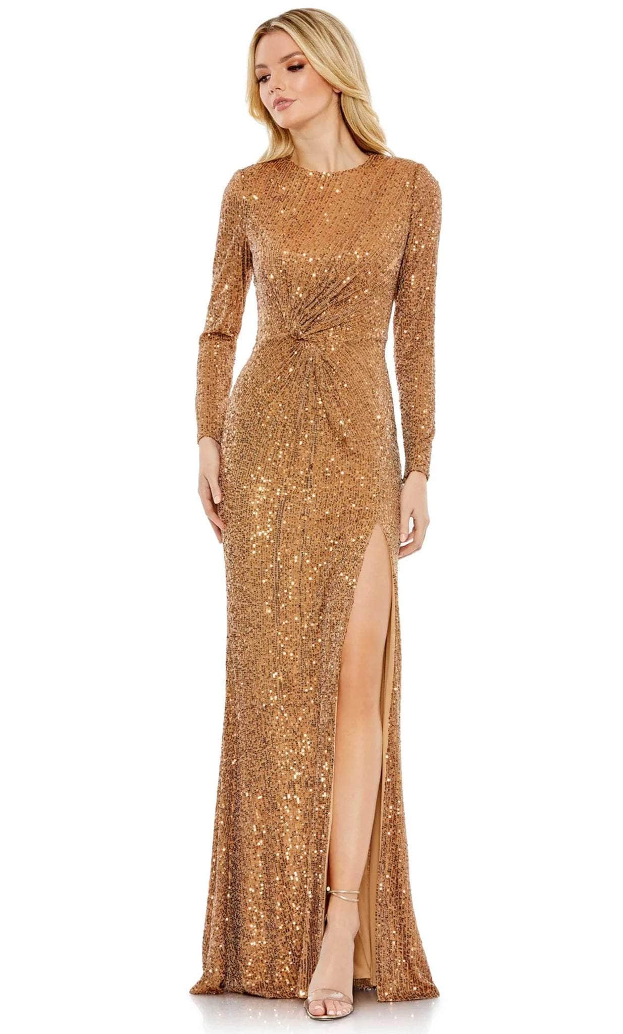 With this alluring Ieena Duggal 42013, introduce a classic sense of fashion. This elegant piece is beautifully sculpted from sequin fabric and features a fitted bodice framed with long sleeves and crowned with a high neckline. A center zipper fastens the fully enclosed back and the skirt parades in a sheath silhouette that falls to the floor. Wearing this Ieena Duggal 42013 dress, you can dazzle the crowd as you glide past them and leave a lasting impression. Models are wearing Antique gold and Bottle Green colors.