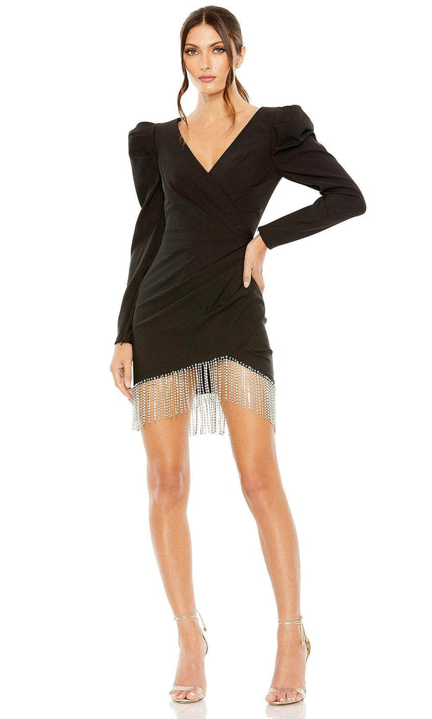 | Details: | Pleated, Long Puff Sleeves, Rhinestone Fringed Hem, Slit, Closed Back, Full Back Zipper |