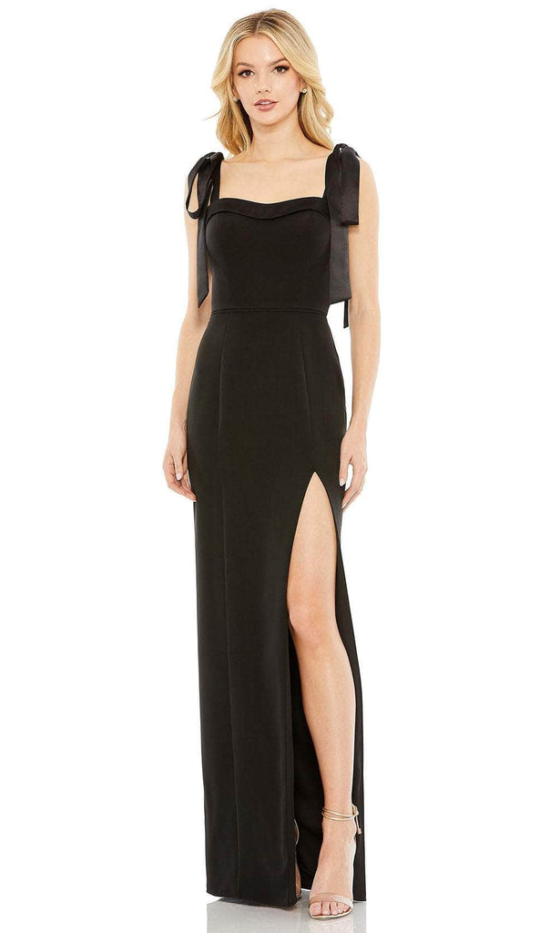 Put your fashionable foot forward in this Mac Duggal 49620 evening dress. This dress has a chic square neckline and a square back that will make you seem and feel sophisticated. The sleeveless design is functional and flattering, highlighting your shoulders without restricting your range of motion and the high slit will make you look more alluring and dramatic. Finished by the hidden back zipper that provide security. Be ready to fascinate everyone with this elegant Mac Duggal creation! Model is wearing Black.