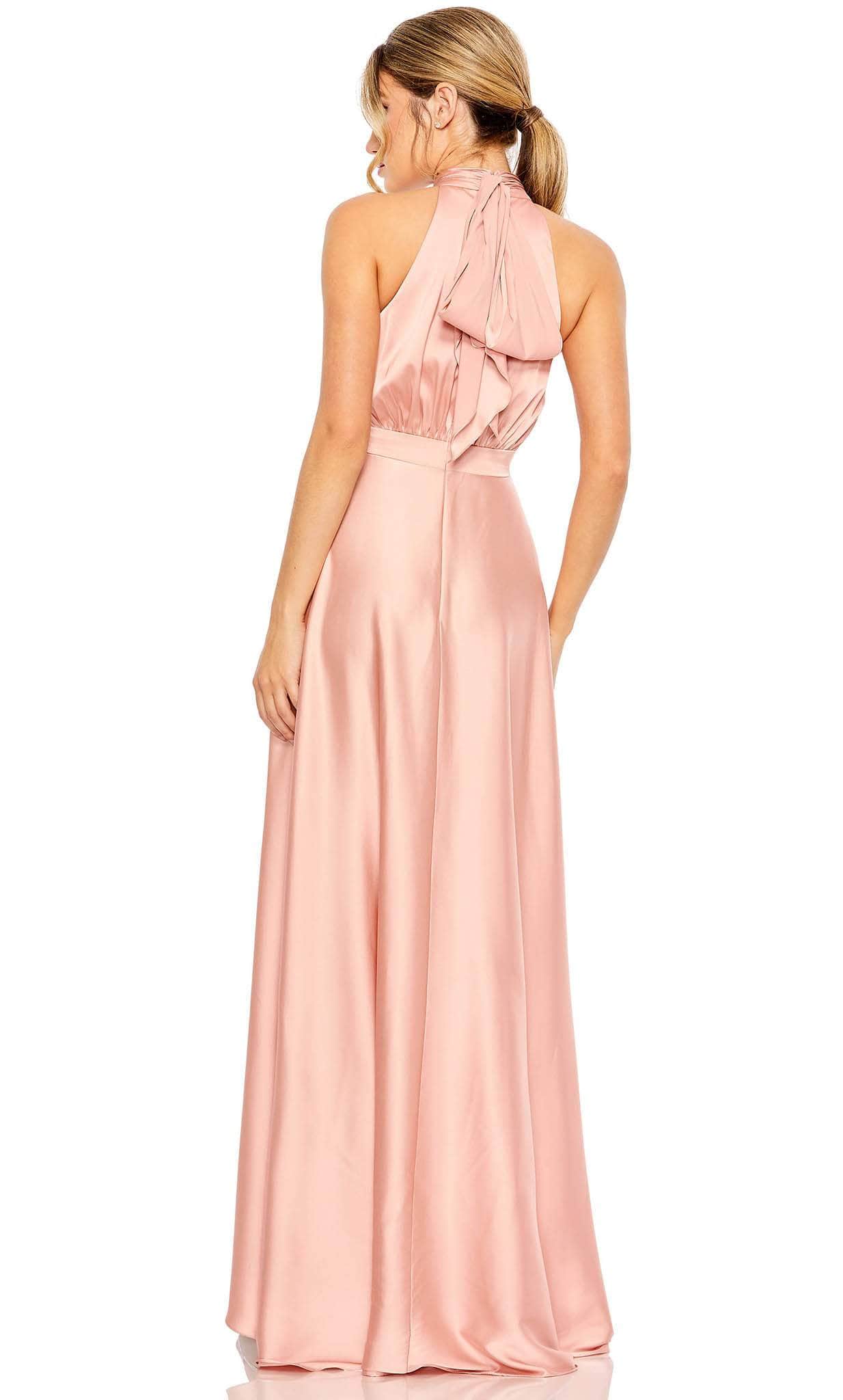Be the center of attention on your next formal occasion in this Mac Duggal 49664. This evening gown is a beautiful addition to your party wardrobe because of the silken fabric from which it is crafted. The pleats on the billowy bodice gather at the high halter neckline, and a thin ribbon ties at the waist. The high low hemline and flattering A-line cut of the skirt will have you walking out the door with a sass. This elegant dress from Mac Duggal 49664 would make a luxurious mother of the bride or groom dress, wedding guest dress, or black tie evening gown. Model is wearing Rose color.