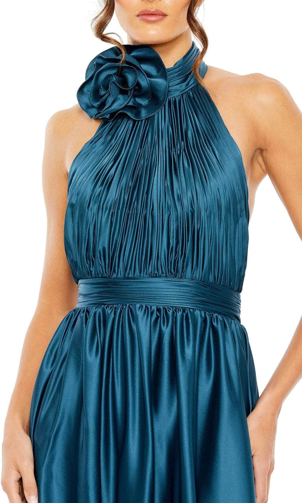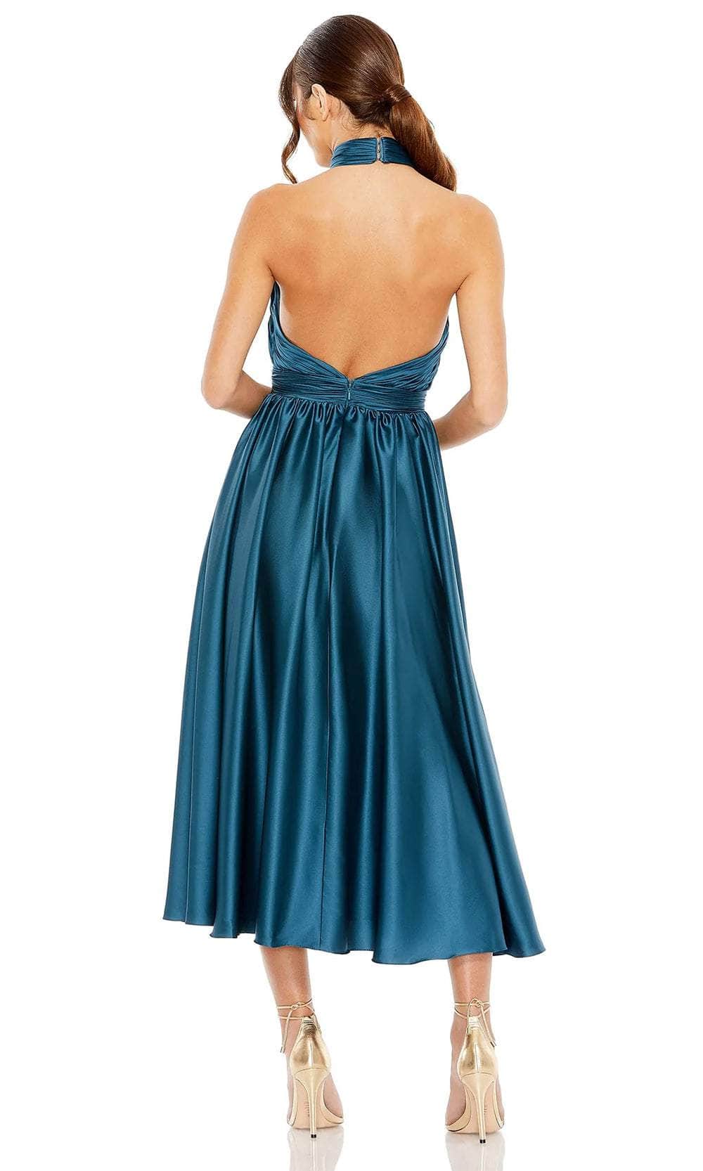 Cultivate an aura of timeless femininity in the Ieena Duggal 49674 masterpiece. This tea-length dress, meticulously crafted from luxurious charmeuse satin, flatters the figure with a chic floral detail adorning the halter neckline. The silhouette gracefully cinches at the natural waist with a ruched waistband before cascading into a full, flowing skirt that finishes at a universally flattering tea length. Ideal for summer soirees or garden weddings, the Ieena Duggal 49674 creation ensures you'll exude elegance and confidence on any special occasion. Model is wearing the Ocean color.