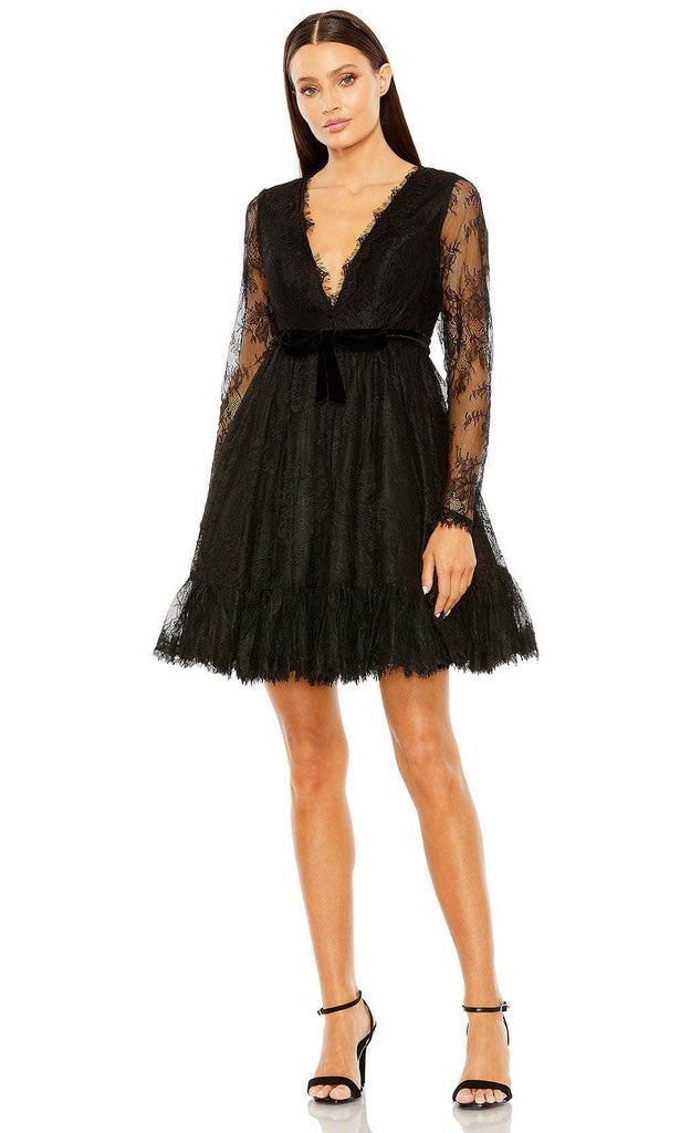 Ieena Duggal 49794 - Lace Deep V-Neck Cocktail Dress