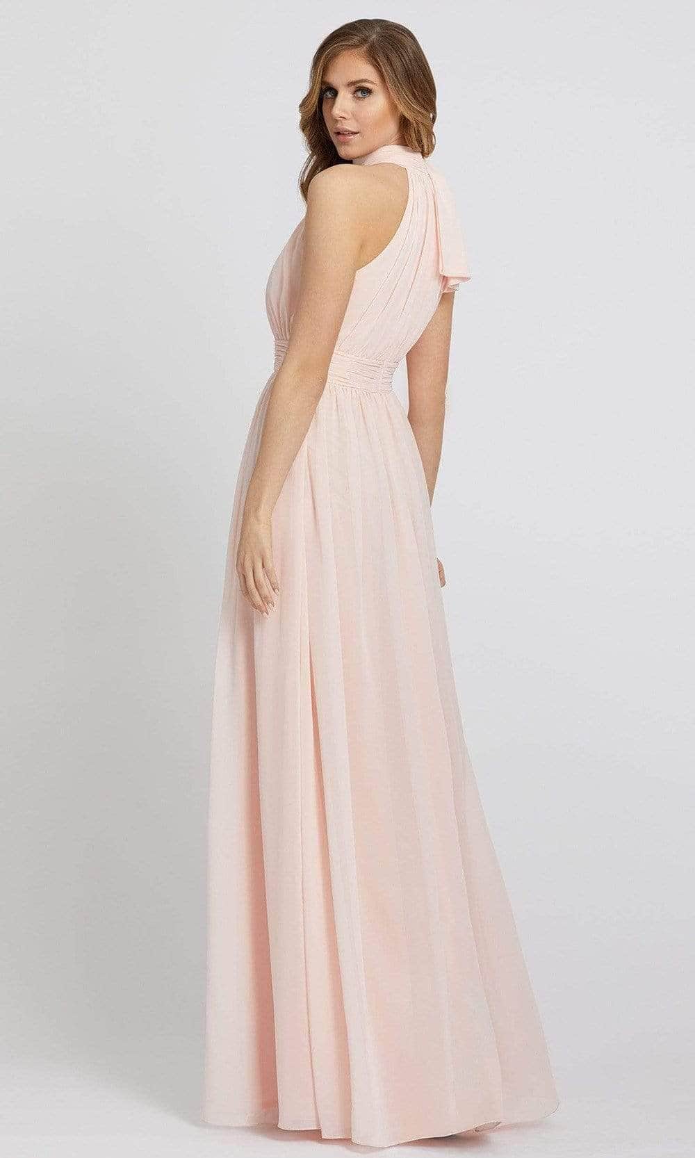 Revel in a style in this classy Ieena Duggal 55035 creation. Embellished with soft ruching on the bodice and choker detail, this dress has a high halter neckline with a racerback. Crowned with a ruche-detailed waistband, the lush A-line skirt cascades to the floor with a full length hem. Be the very picture of elegance in this Mac Duggal masterpiece.