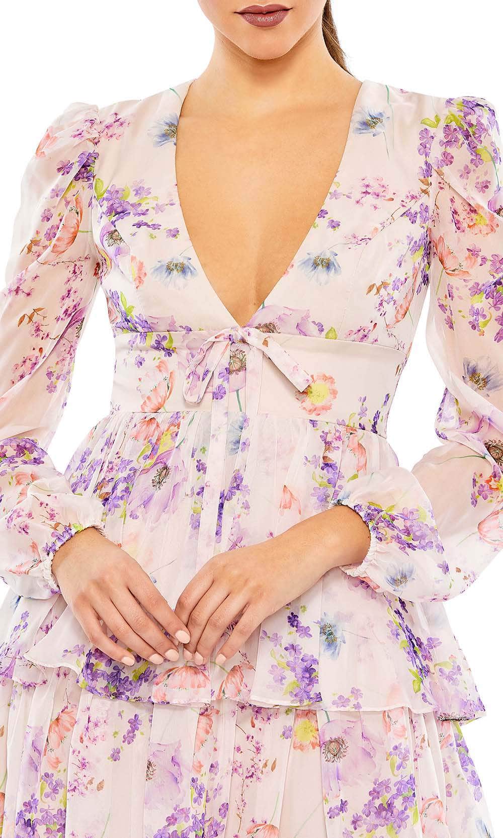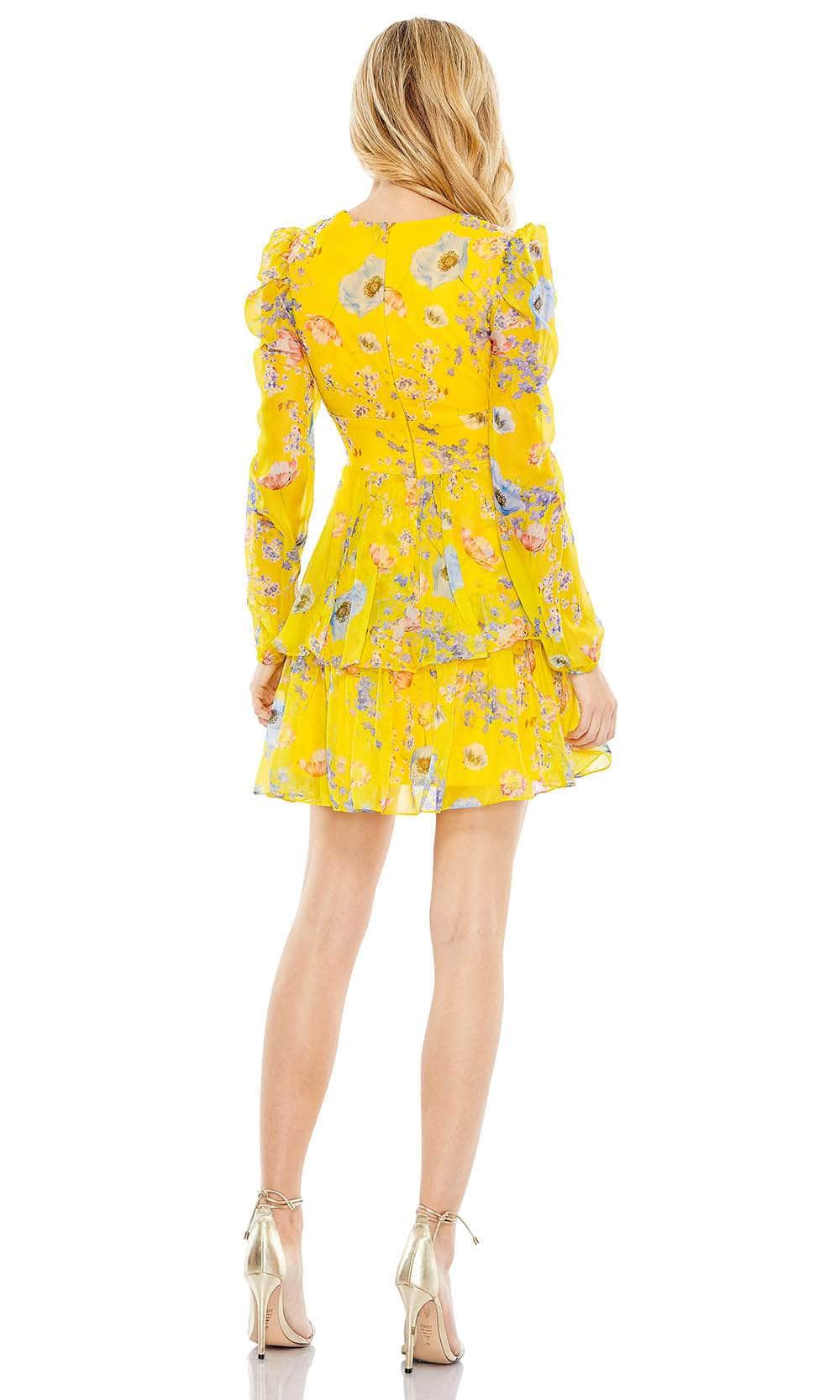 Take on the night in this Ieena Duggal 55838 dress. Featuring a V Neck neckline, long sleeves, and a fully lined bodice, this daring sheath dress is sure to turn heads. Ruffle details add a touch of feminine flair to the daring look. Dare to go bold with Ieena Duggal! Model is wearing the Yellow Multi color.