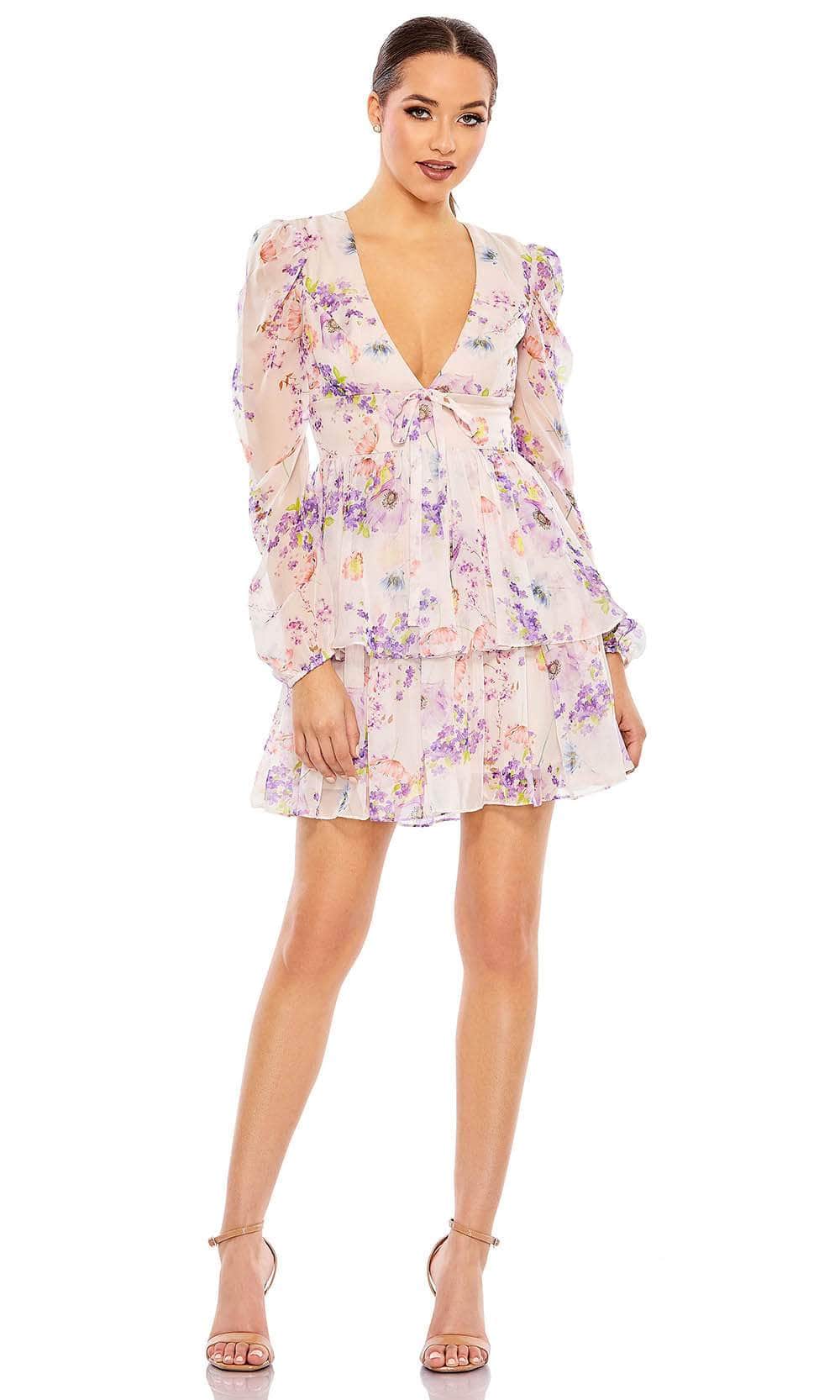 Ieena Duggal 55838 - Long Sleeve V Neck Short Prom Dress
