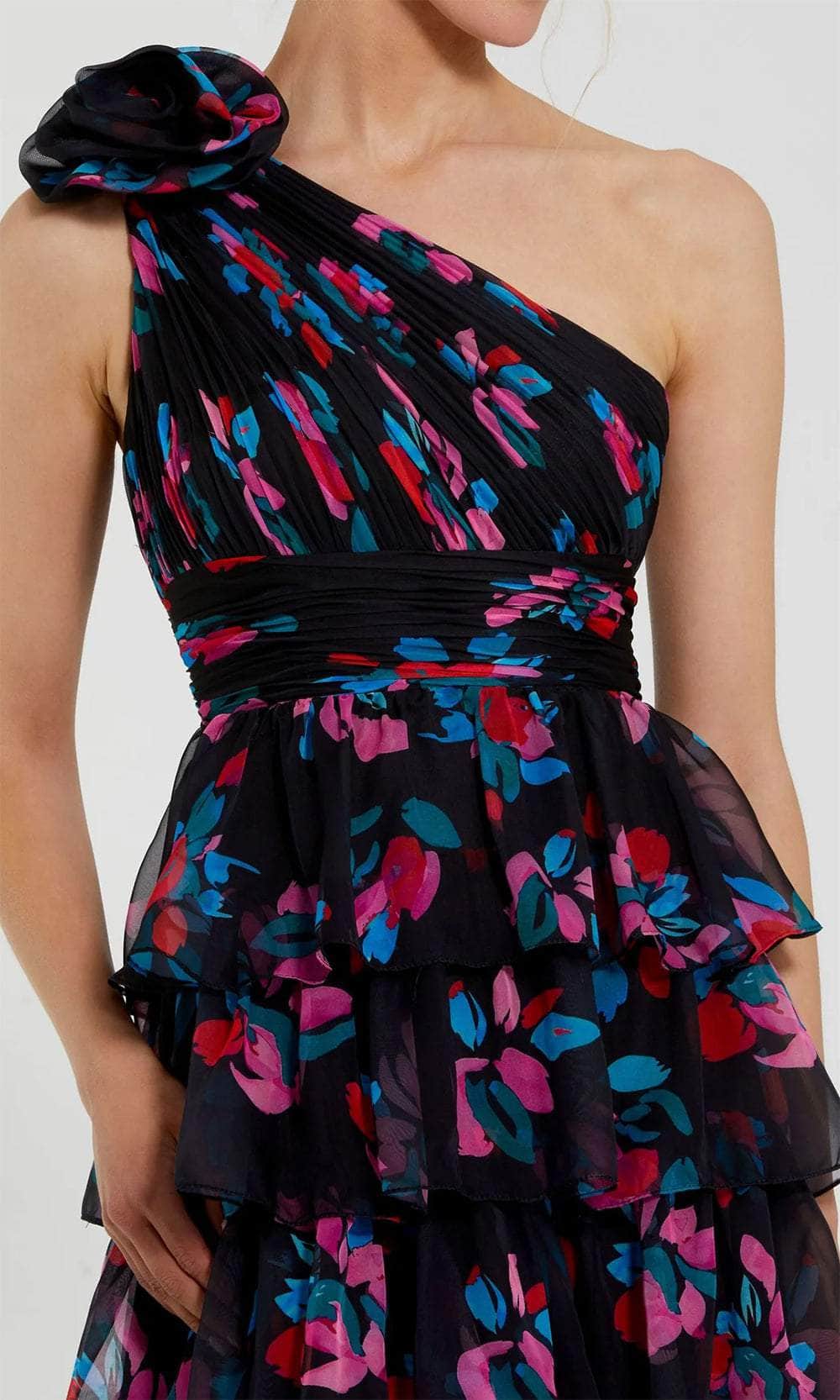| Details: | One-shoulder, Flower Detail, Ruffle Skirt, Back Zipper Closure |