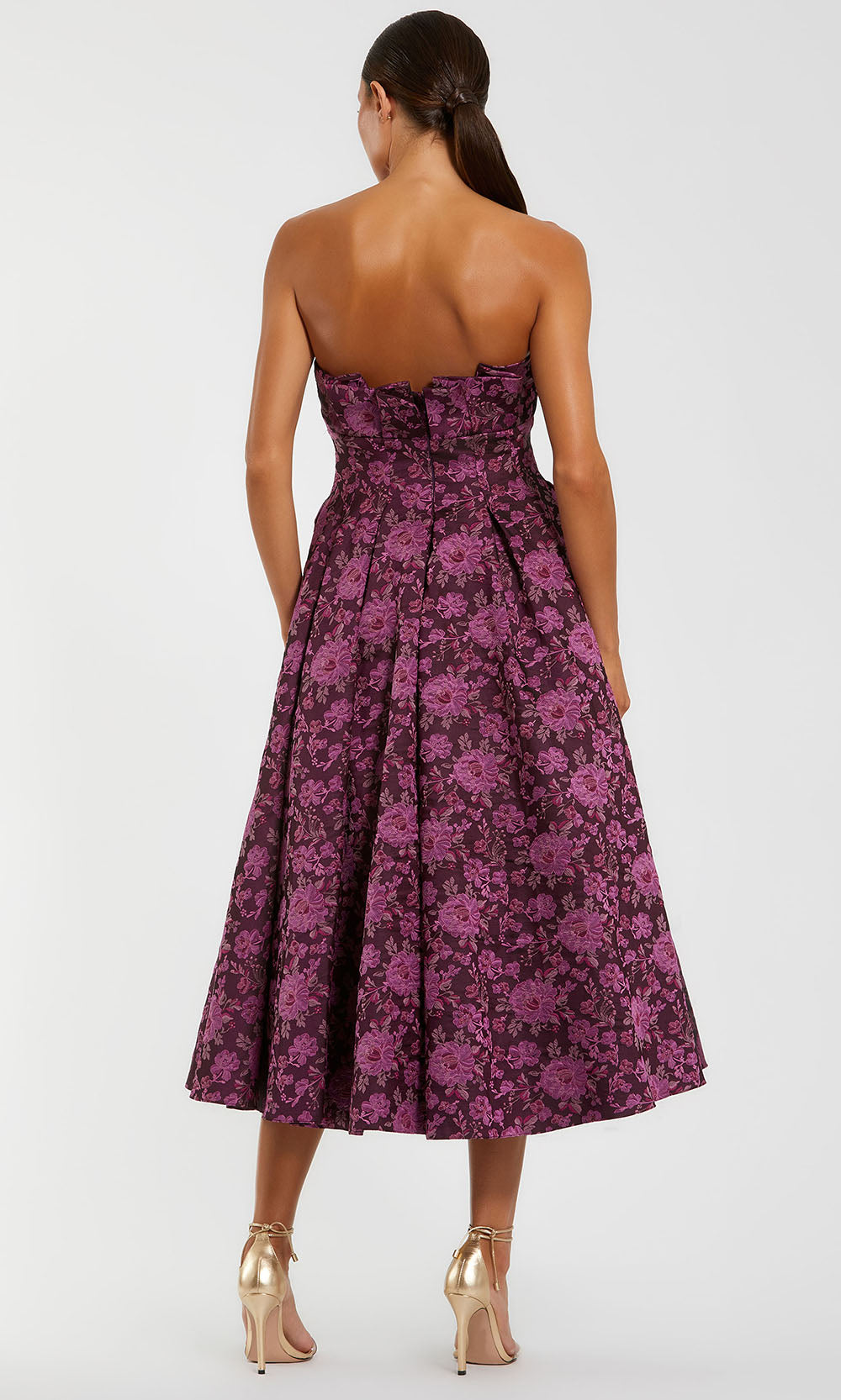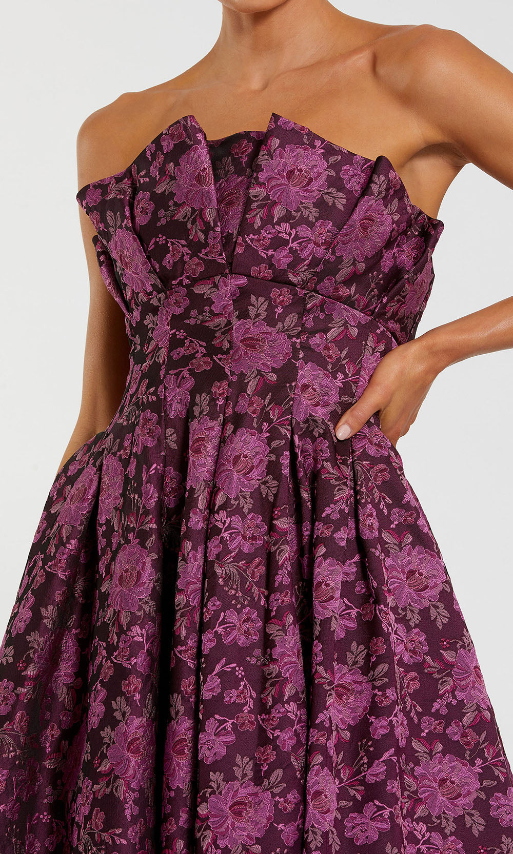 | Details: | Strapless, Pleated, Floral Embroidery, Open Back, Concealed Back Zipper |