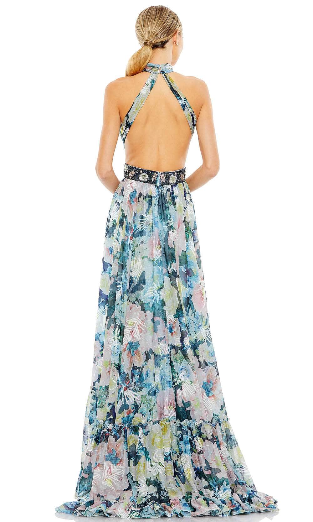 Walk in confidence and style and let all heads turn on you in this creation by Mac Duggal 68089. This sleeveless stunner shows a halter neckline featured in an intricate pleated bodice while depicting a bare back with a criss cross design and side cutouts. A zipper closure and a pair of hook and eyes secures the dress. The A-line skirt streams down smoothly in a full-length hemline with ruffle details. Lure appreciative eyes towards you in this stunningly ravishing Mac Duggal masterpiece. Model is wearing the Pastel/Multi color.