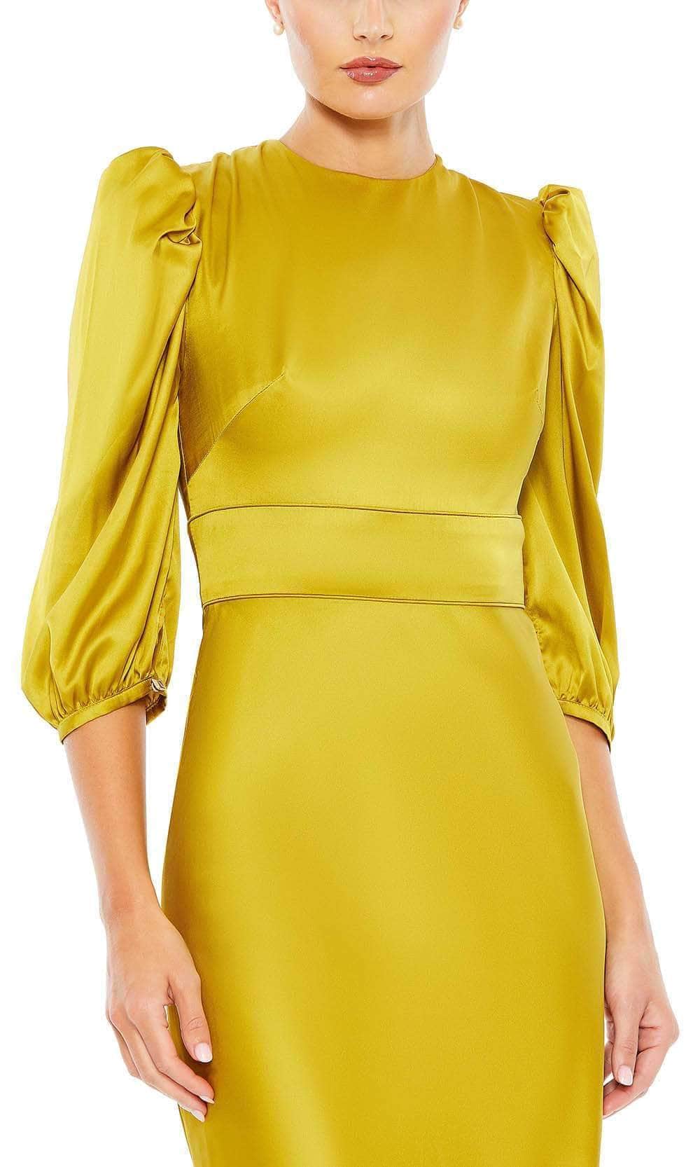 Turn heads with the Ieena Duggal 26927 creation! This elegant dress offers a flattering silhouette with puffed sleeves that elongate your frame. The high neckline and back add a touch of sophistication, while the full back has a concealed zipper ensures a smooth fit. A hidden slit in the skirt allows for comfortable movement, and the luxurious Charmeuse fabric drapes beautifully for a glamorous look. Mesmerize all night long wearing this stunning Ieena Duggal 26927 masterpiece. Models are wearing the Chartreuse, Fuchsia, and Marigold colors.