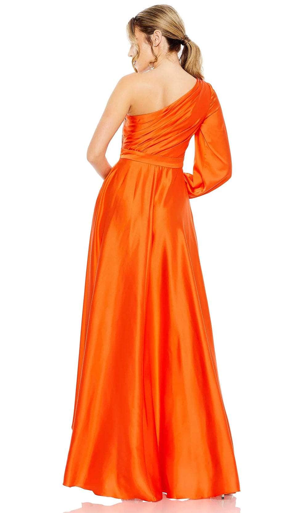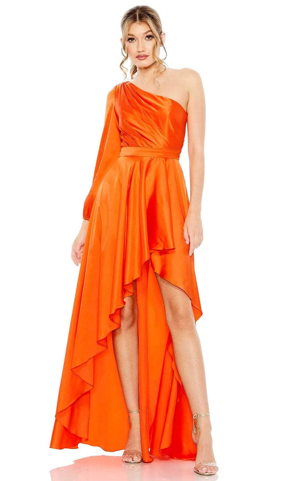 Own the room with the undeniably sophisticated Ieena Duggal A49141 masterpiece. This evening gown flatters your form with a tailored lining crafted from luxurious satin, ensuring a smooth drape that accentuates your figure. The dramatic bishop sleeve adds a touch of grandeur, while the one-shoulder neckline with ruched details on the bodice creates a captivating interplay of light and shadow. The inset waistband cinches the silhouette, and the A-line skirt with a high-low hem adds a contemporary touch of movement and drama. This Ieena Duggal A49141 creation guarantees you'll be a vision of modern elegance. Models are wearing the Chartreuse and Orange colors.