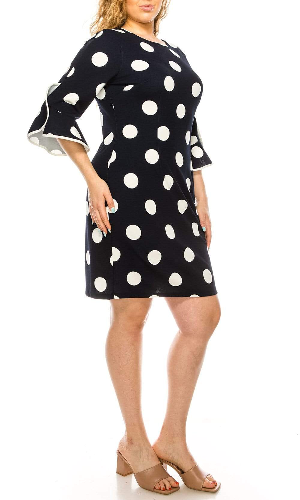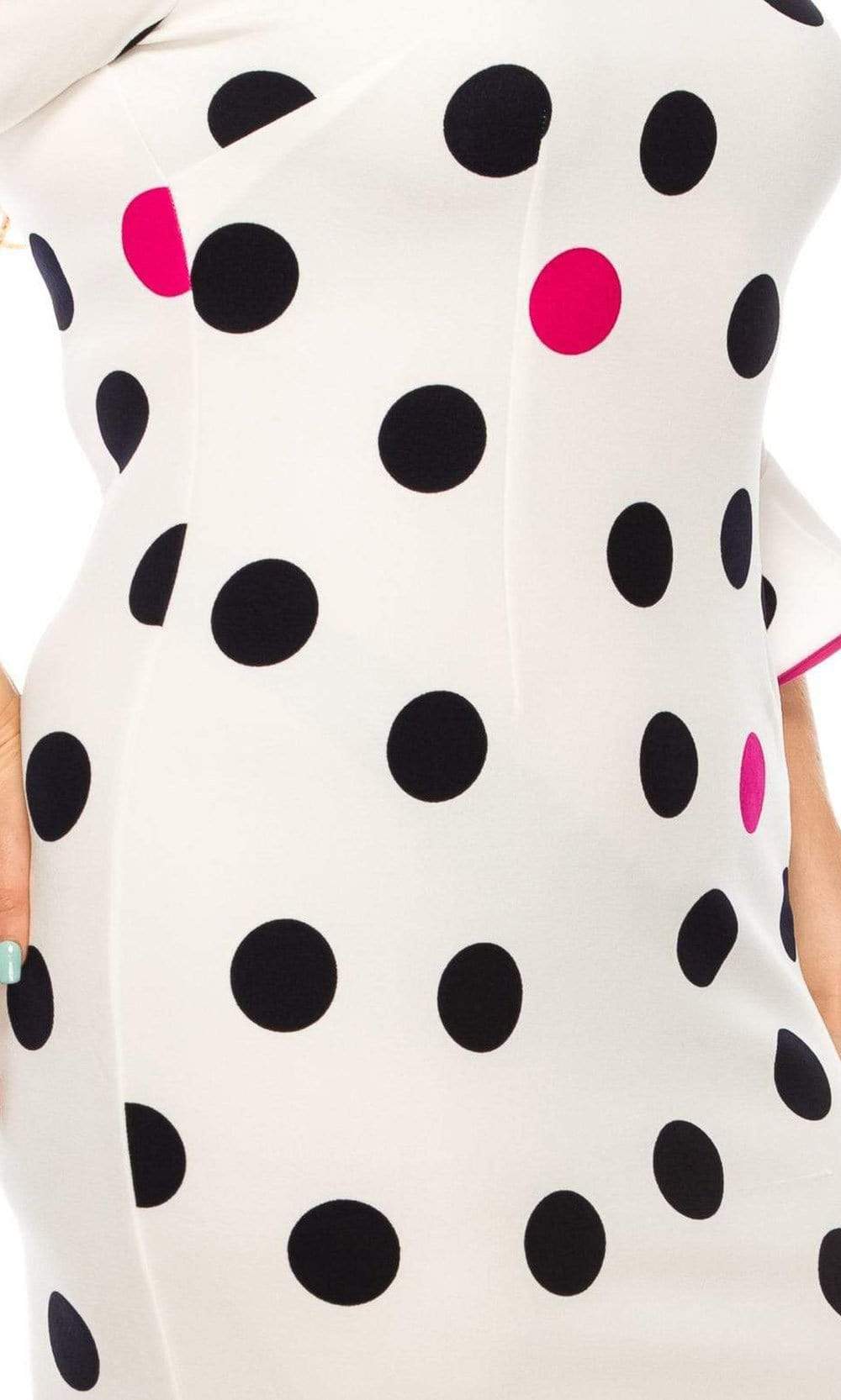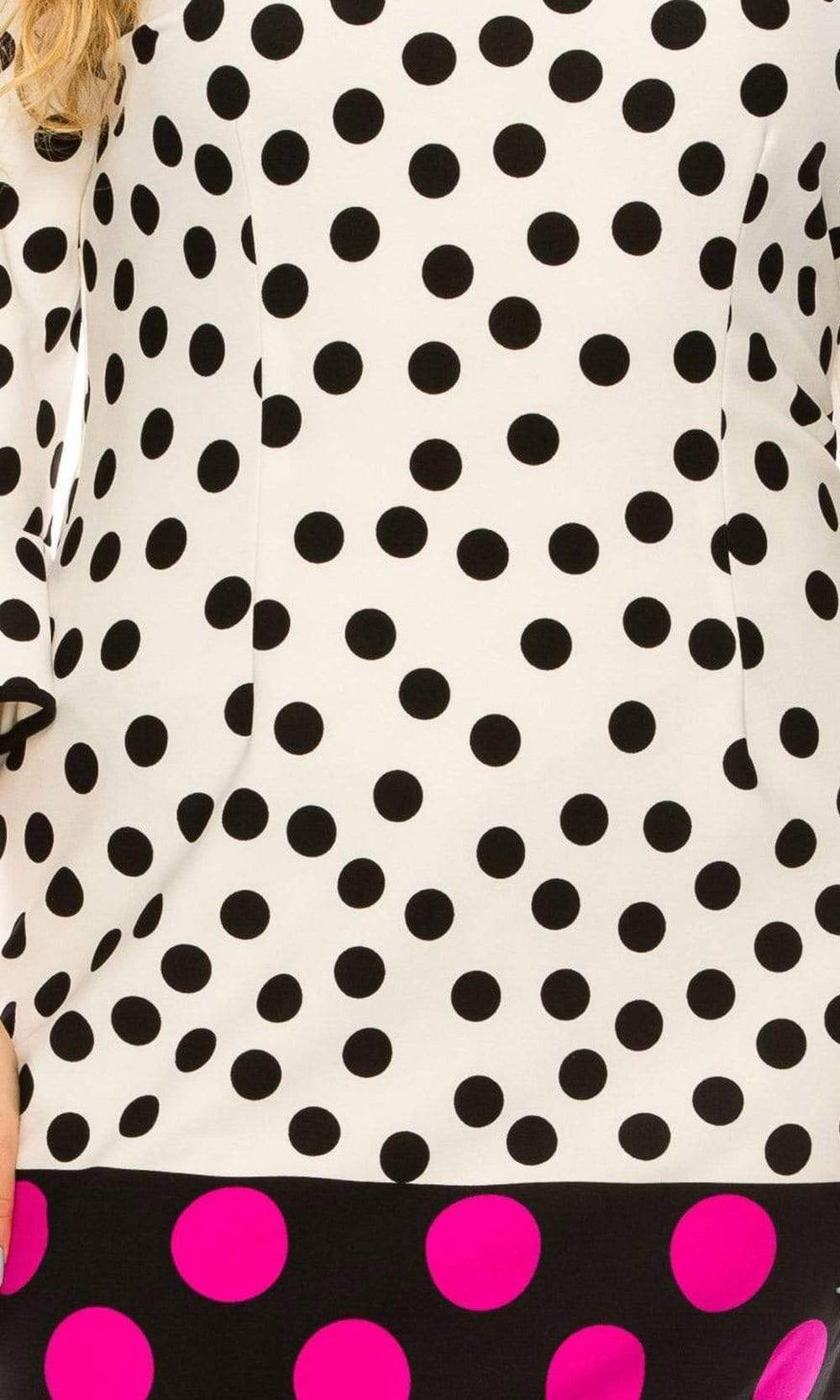 Holiday DressesLet your look be the topic of conversation in this casual yet chic ILE Clothing SCP1082 dress. This dress showcases a jewel neckline supported by quarter length ruffled bell sleeves in a polka dots printed bodice. The skirt reveals a sheath silhouette while the back shows a full back with back zipper closure. Put your best foot forward in a ILE Clothing creation.