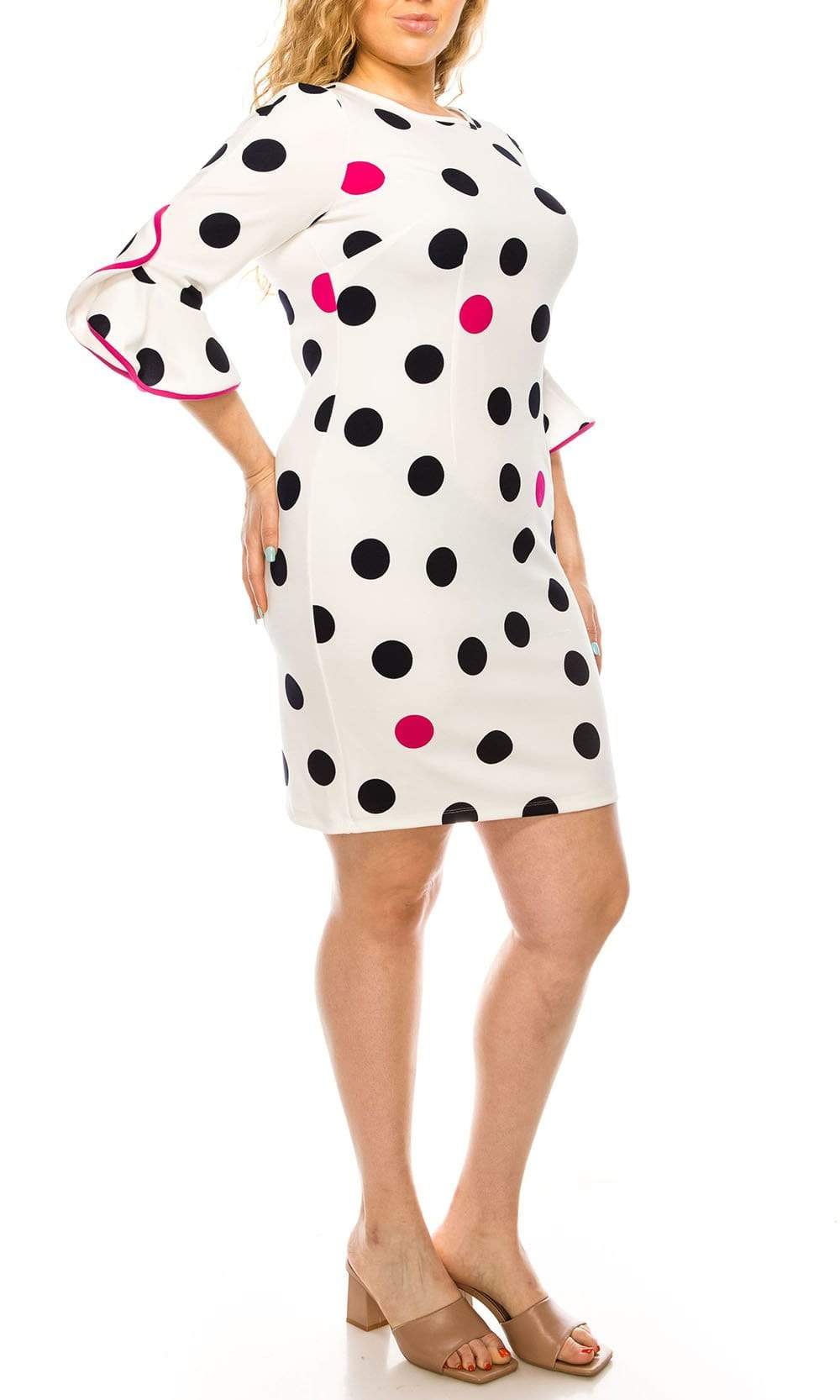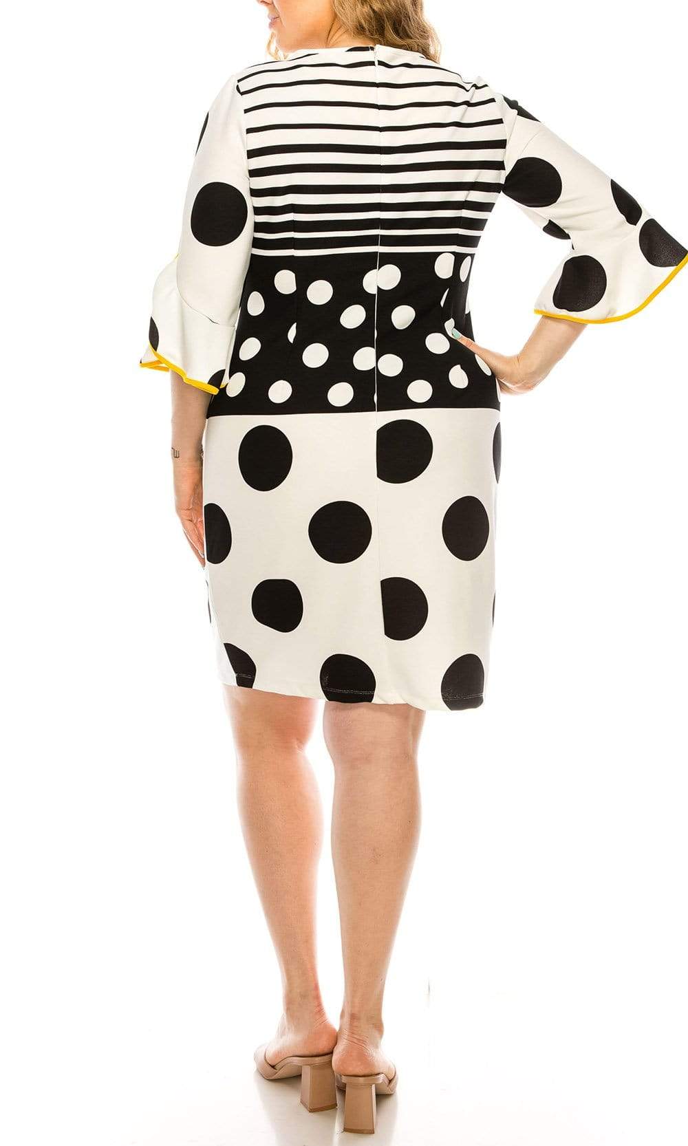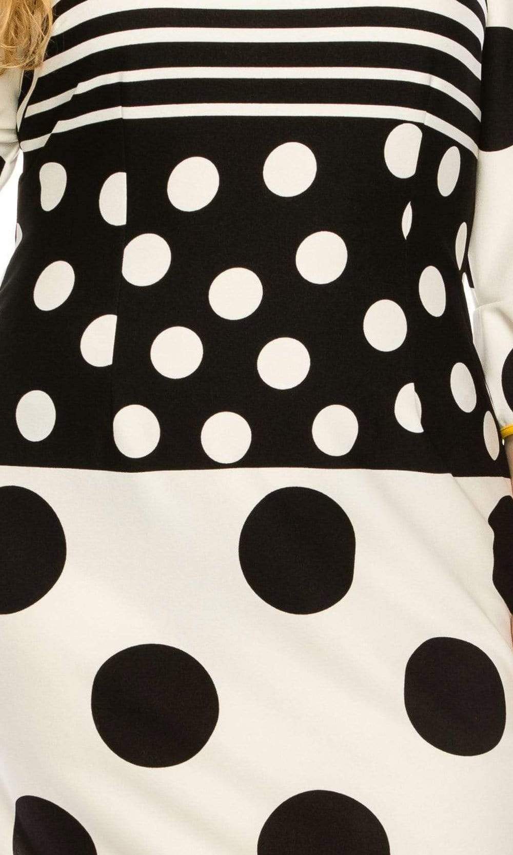Holiday DressesLet your look be the topic of conversation in this casual yet chic ILE Clothing SCP1082 dress. This dress showcases a jewel neckline supported by quarter length ruffled bell sleeves in a polka dots printed bodice. The skirt reveals a sheath silhouette while the back shows a full back with back zipper closure. Put your best foot forward in a ILE Clothing creation.