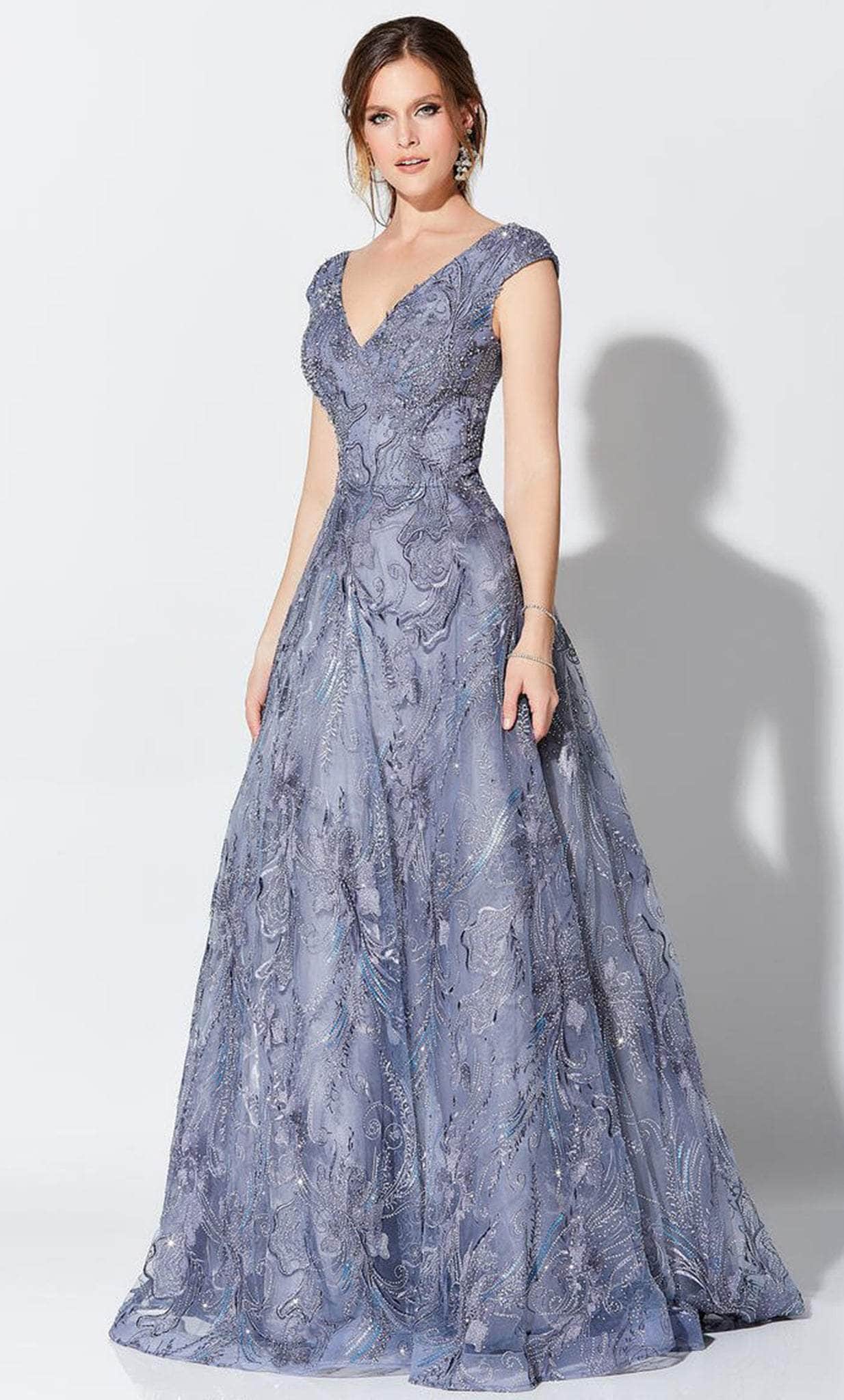 With this stunning Mon Cheri 119D50W, you may adorn yourself in avant-garde fashion. The A-line dress has intricate beading and embroidery all over it. It has a v-neckline and cap sleeves and is constructed of beaded fabric. The sweep train enables a beautiful walk. V-back is incorporated to expose some skin for a romantic appearance. As you stage a bold arrival with this brilliant Mon Cheri 119D50W, exude a modern sense of elegance. The model is wearing a Delphinium color.