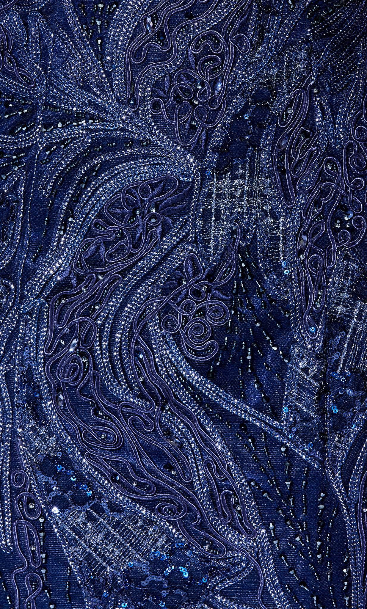 | Fabric: | Tulle with Embroidery, Metallic Ribbon and Beading |