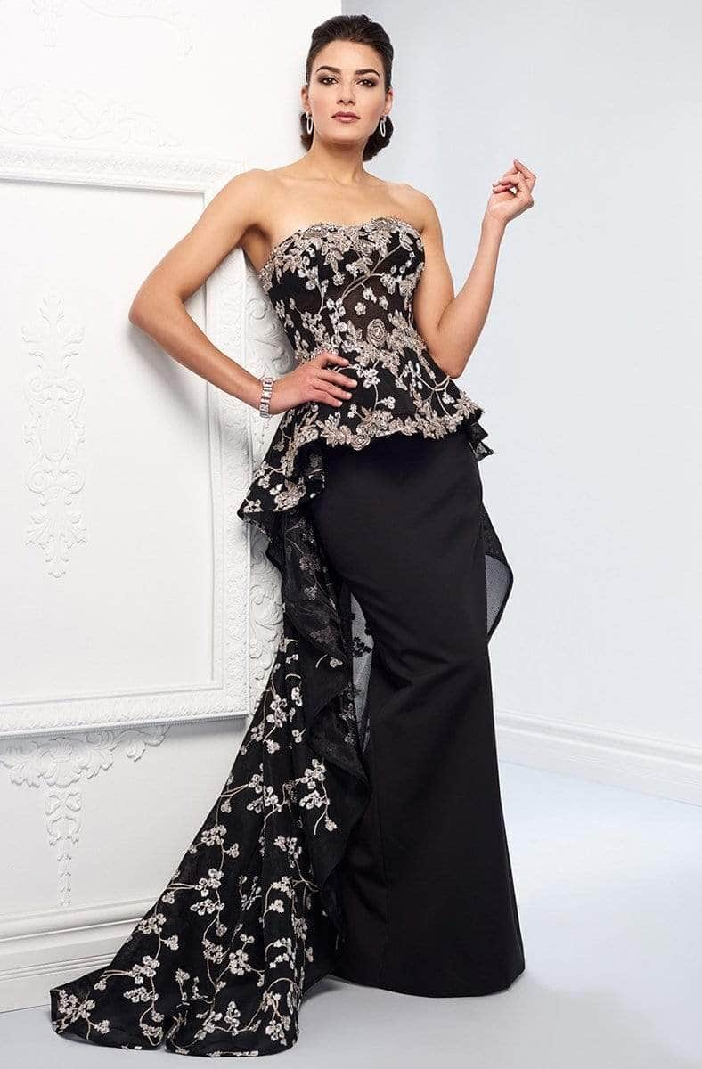Unleash the drama as you gracefully enter the event with this Ivonne D for Mon Cheri 218D32 dress. Crafted from stretch crepe, it showcases a strapless, semi-sweetheart neckline with a fitted bodice adorned with embroidered mesh and corded lace appliques. The waist has a peplum detail that cascades at the back to form a sweep train. The skirt has a fitted silhouette that highlights your curves. The dress includes detachable embellished tapered straps. This Ivonne D for Mon Cheri 218D32 style is a sure standout at your next evening social event.