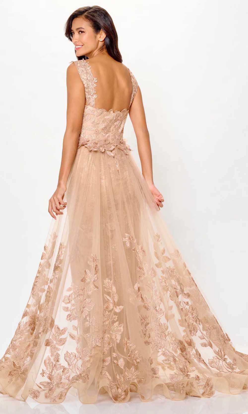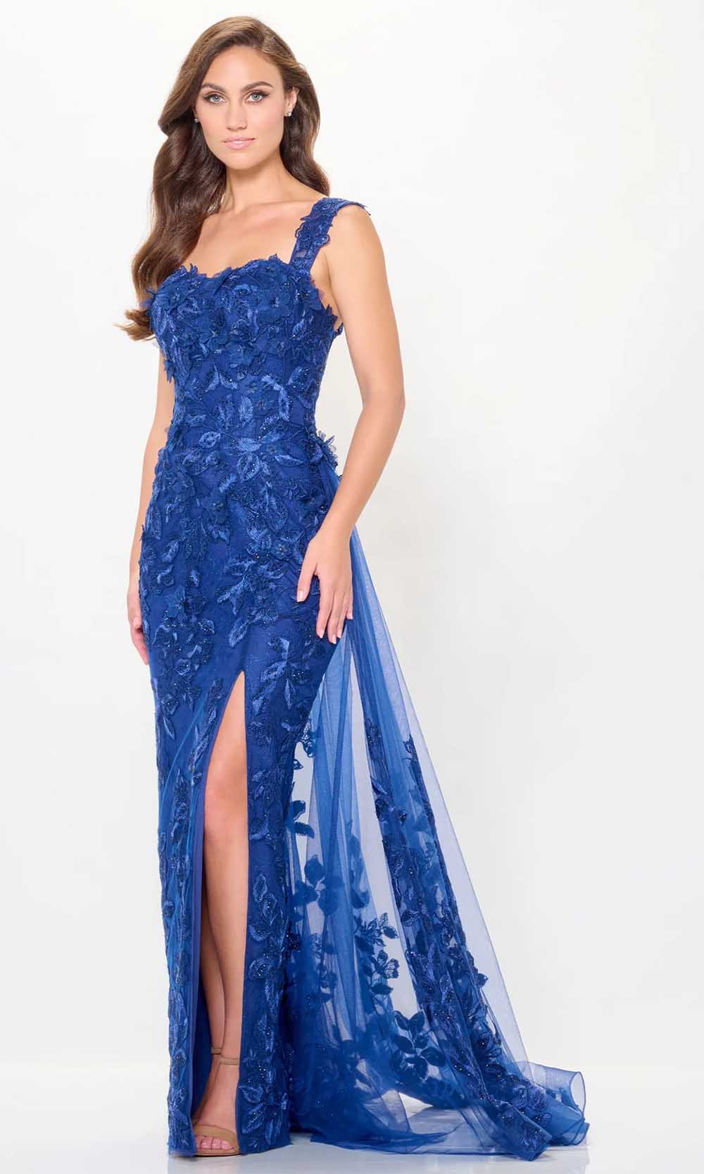 Step into the spotlight with the Ivonne D ID6209 creation, a gown designed for the woman who appreciates timeless elegance with a touch of modern allure. This meticulously tailored sheath silhouette is crafted from a dreamlike combination of airy tulle and exquisite floral lace appliques. The sweetheart neckline flatters the décolletage, while a sultry thigh-high split adds a touch of understated drama. A breathtaking detachable train allows you to transform the gown from a captivating cocktail dress to a regal evening masterpiece. Detach the train and straps, and drape the matching bolero for a more intimate gathering. This Ivonne D ID6209 creation ensures you'll be the epitome of elegance for any formal occasion. Models are wearing the Gold, Blue Willow, and Rose colors.