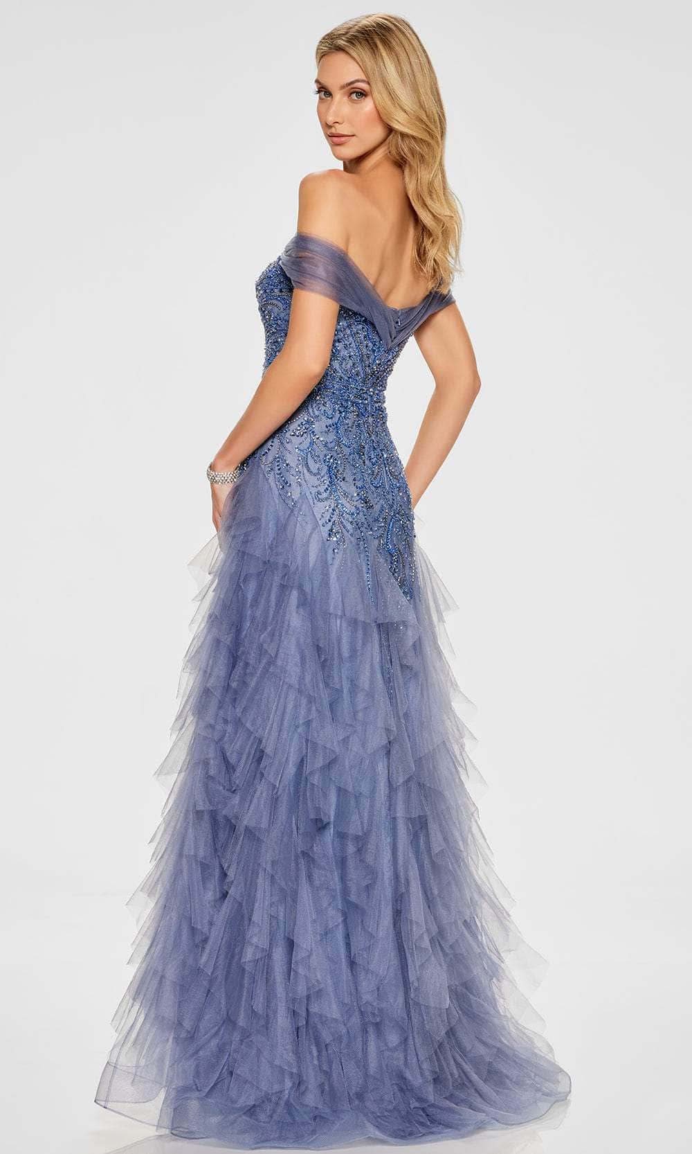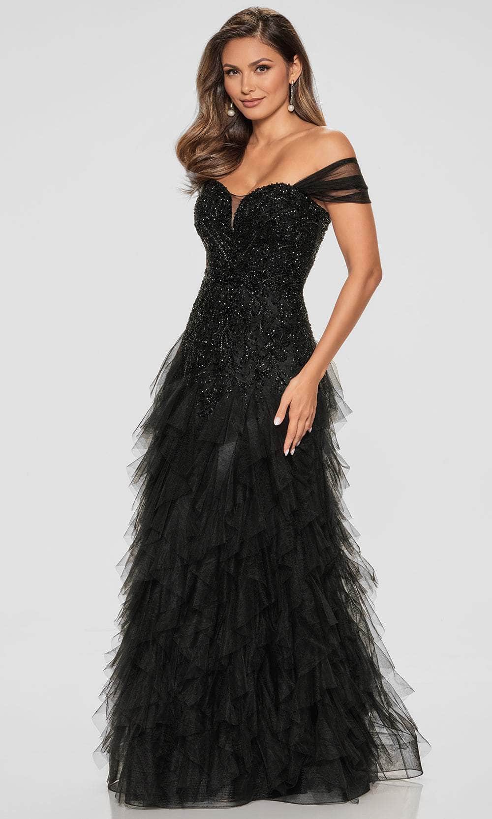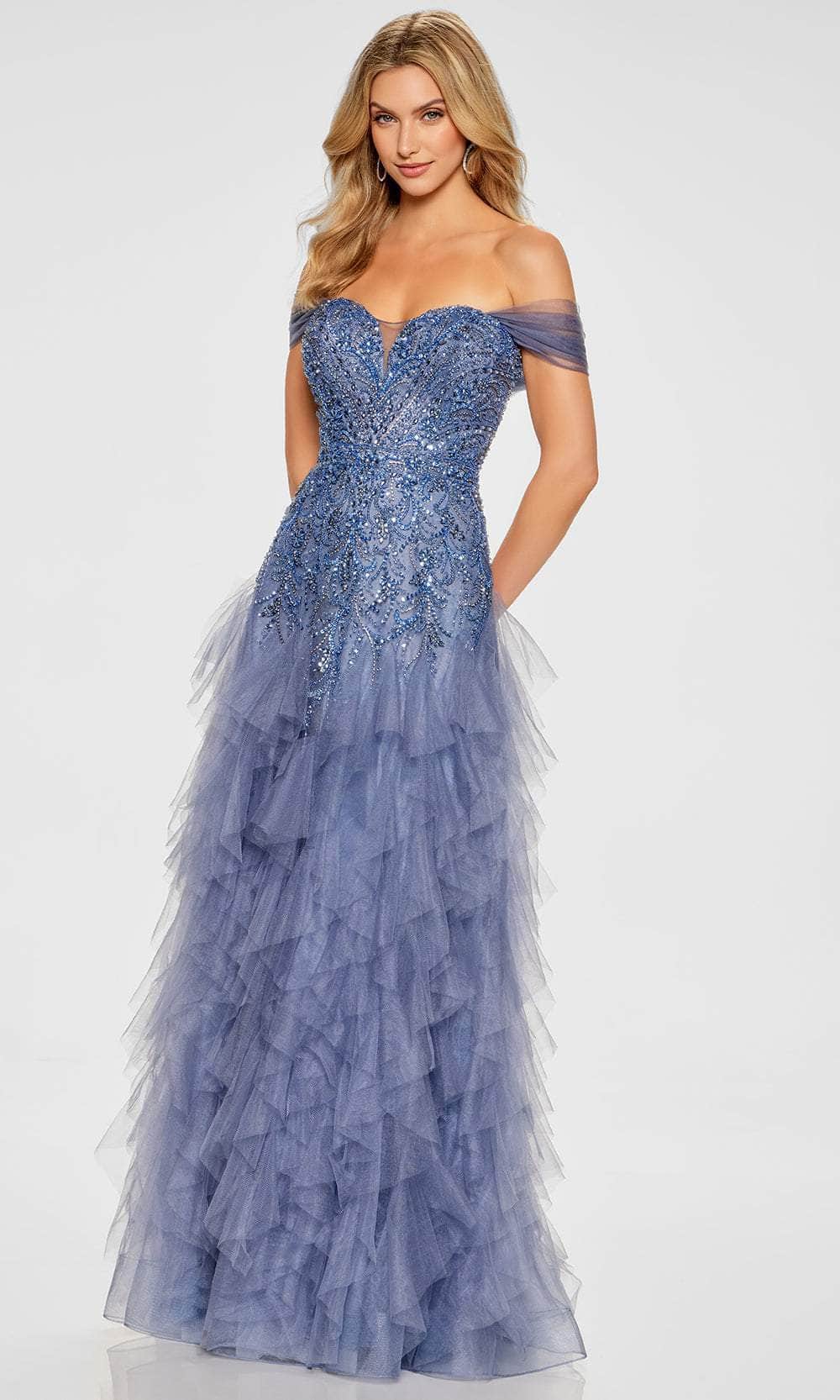 The Ivonne D ID806 is the epitome of glamour, blending a voluminous A-line silhouette with breathtaking details. An off-the-shoulder sleeves and sweetheart neckline adds a romantic touch, complementing the fully embroidered and beaded bodice. A layered ruffled tulle skirt cascades dramatically, creating an enchanting effect with every step. For versatile wear, it includes separate spaghetti straps and a matching shawl, allowing customizable styling options. Whether attending a wedding or an extravagant evening affair, this Ivonne D ID806 guarantees a show-stopping entrance. Models are wearing Black, and Periwinkle colors.