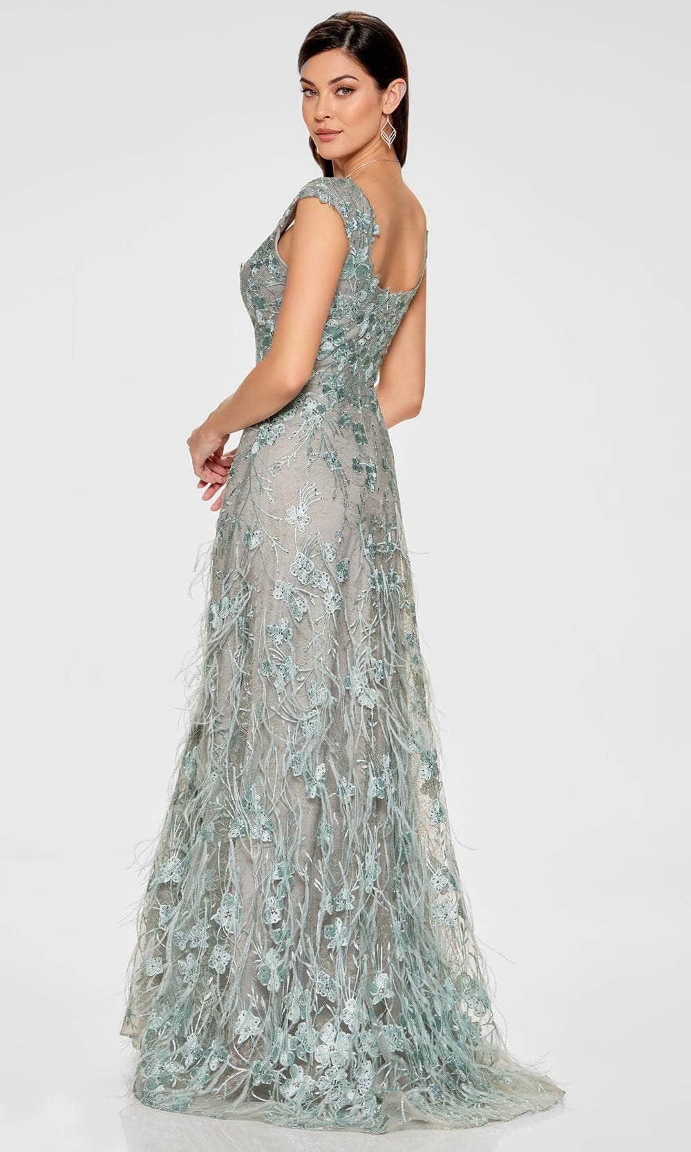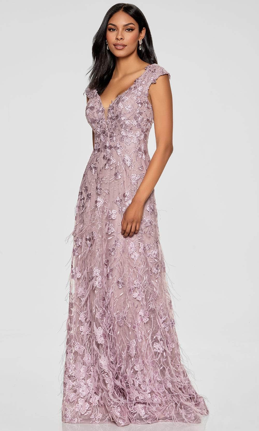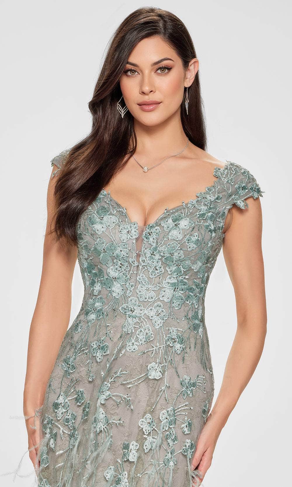 Step into glamour with the Ivonne D ID807, an A-line gown that combines modern luxury with classic elegance. This stunning design showcases a plunging sweetheart neckline with delicate cap sleeves, exuding femininity. Floral lace appliques, beaded and soft feather accents cascade down the silhouette, creating a unique and ethereal aesthetic. The matching shawl adds a touch of sophistication and versatility to your look. This Ivonne D ID807 creation is a statement piece for any high-end occasion, ensuring you leave a lasting impression. Models are wearing Lilac, and Aqua colors.