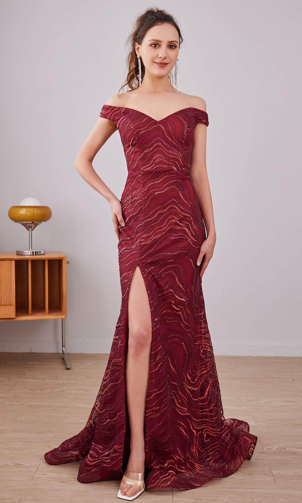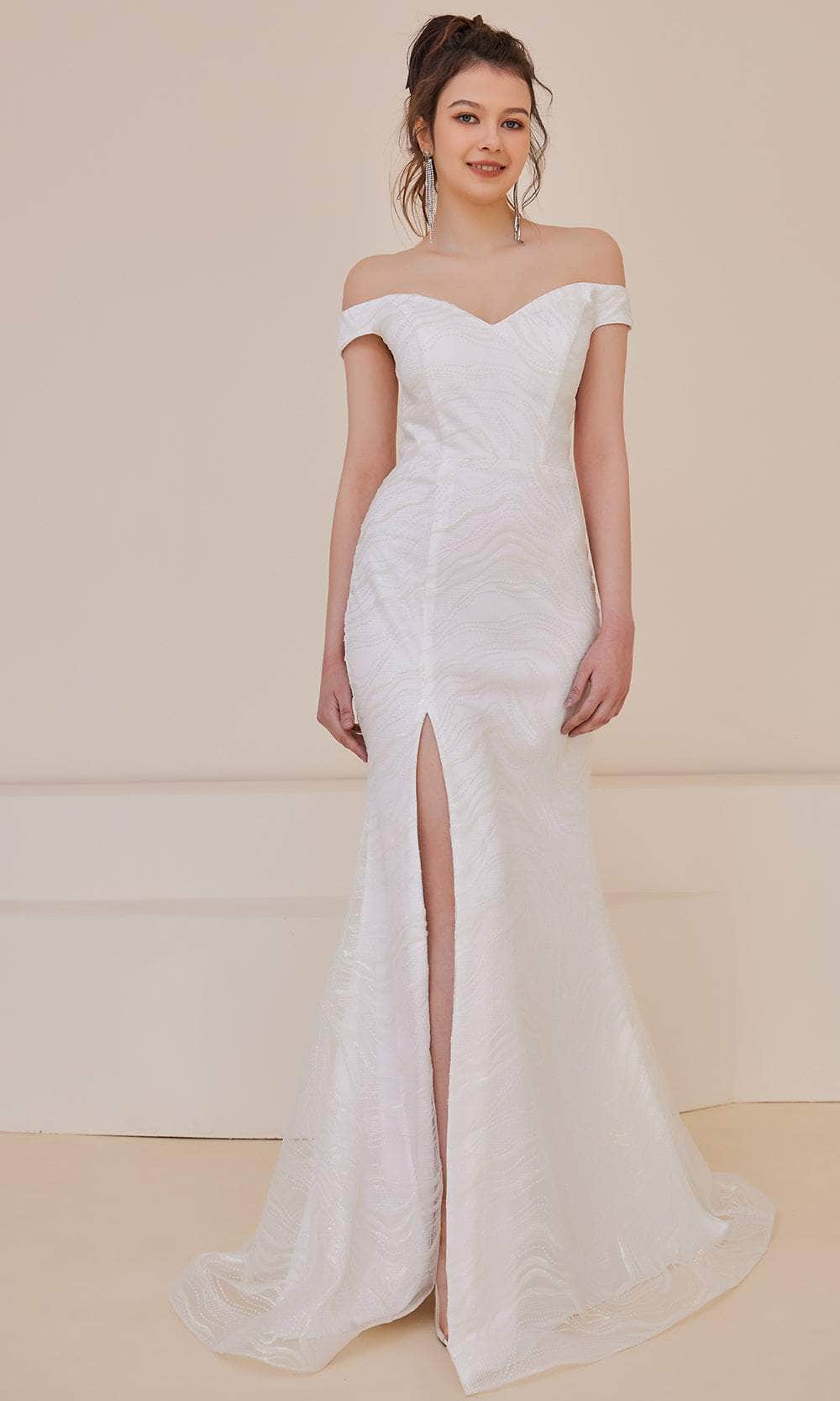 Fantasize a night of eloquent style and poise at your black-tie event while wearing this charming Jadore J21004 masterpiece. This gown will definitely make heads turn with its seamed fit and flare bodice completely adorned in sequin lace. It presents an off-shoulder sweetheart neckline, cap sleeves and a mid-open V-back fasten by a center zipper closure. The mermaid skirt skims and flares to the full-length hem with an elegant sweeping train finish. This Jadore creation will sure to display your natural beauty and grace. Models are wearing the Dusty Pink, Ivory and Wine colors.