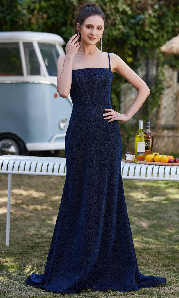 Eye-popping style radiates from every last inch of this chic, sultry long dress by Jadore J21020. Tailored in a sleeveless fitted bodice, this stunner boasts a straight-across neckline accented with boning details. Supported by thin straps that lead to a mid-open back with a lace-up style. As the skirt parades in a column silhouette and finishes in a floor-length hemline with a sweeping train. Feminine, bold, and imperial, this dress from Jadore will make you shine! Models are wearing Midnight, Mocha and Red colors.