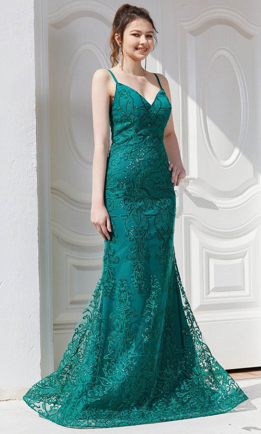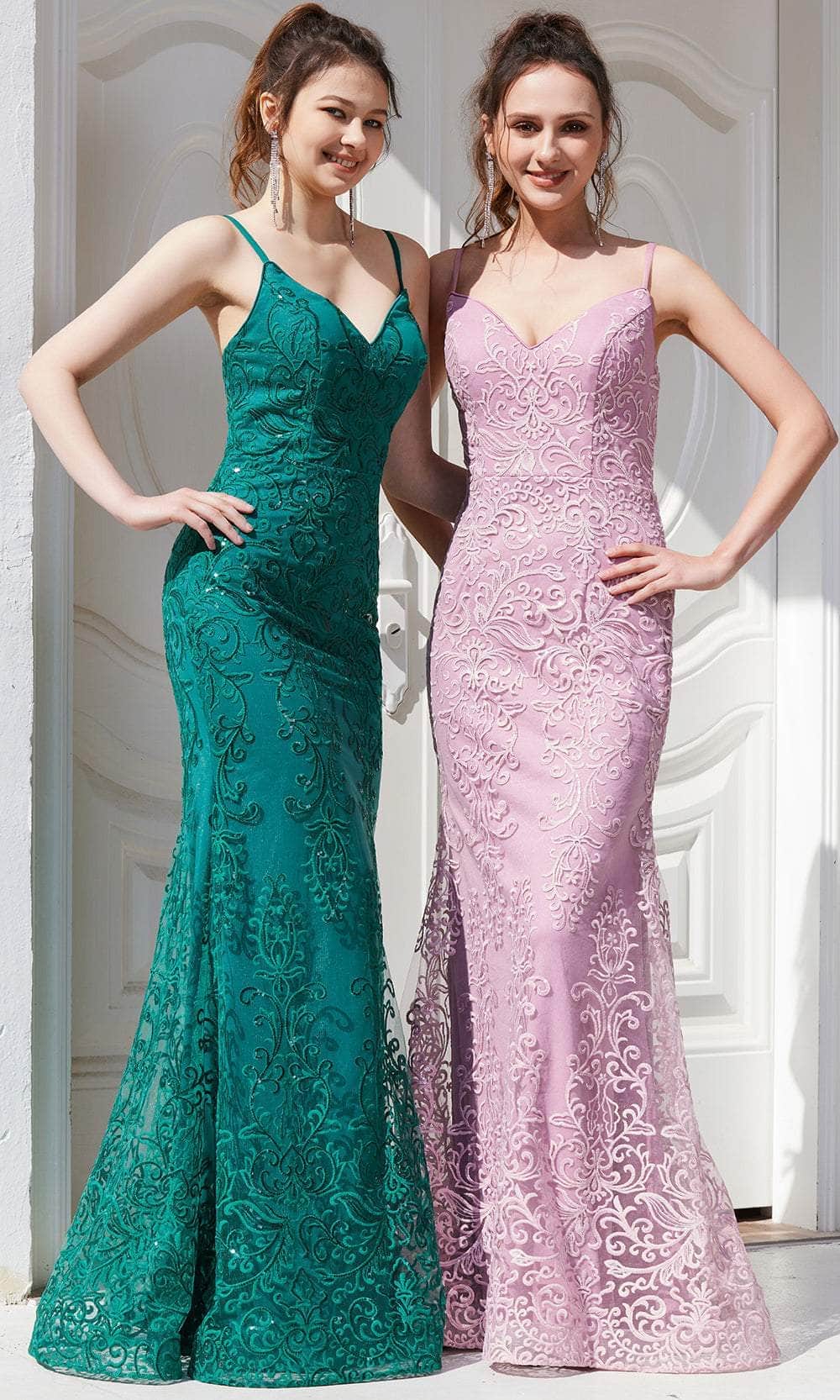 Steal the spotlight in the captivating Jadore J21026 prom gown, ensuring you are the focal point of attention. Adorned with intricate floral lace details throughout, this gown beautifully accentuates and showcases your body shape. The V-neckline, fitted bodice, and body-hugging sheath silhouette create an alluring look, extending into a full-length hem with a subtle train finish. The mid-open back, secured with a zipper closure, adds an extra touch of allure. Command your moment to shine and stand out in this exquisite creation from Jadore J21026. Models are wearing Emerald, and Taro colors.
