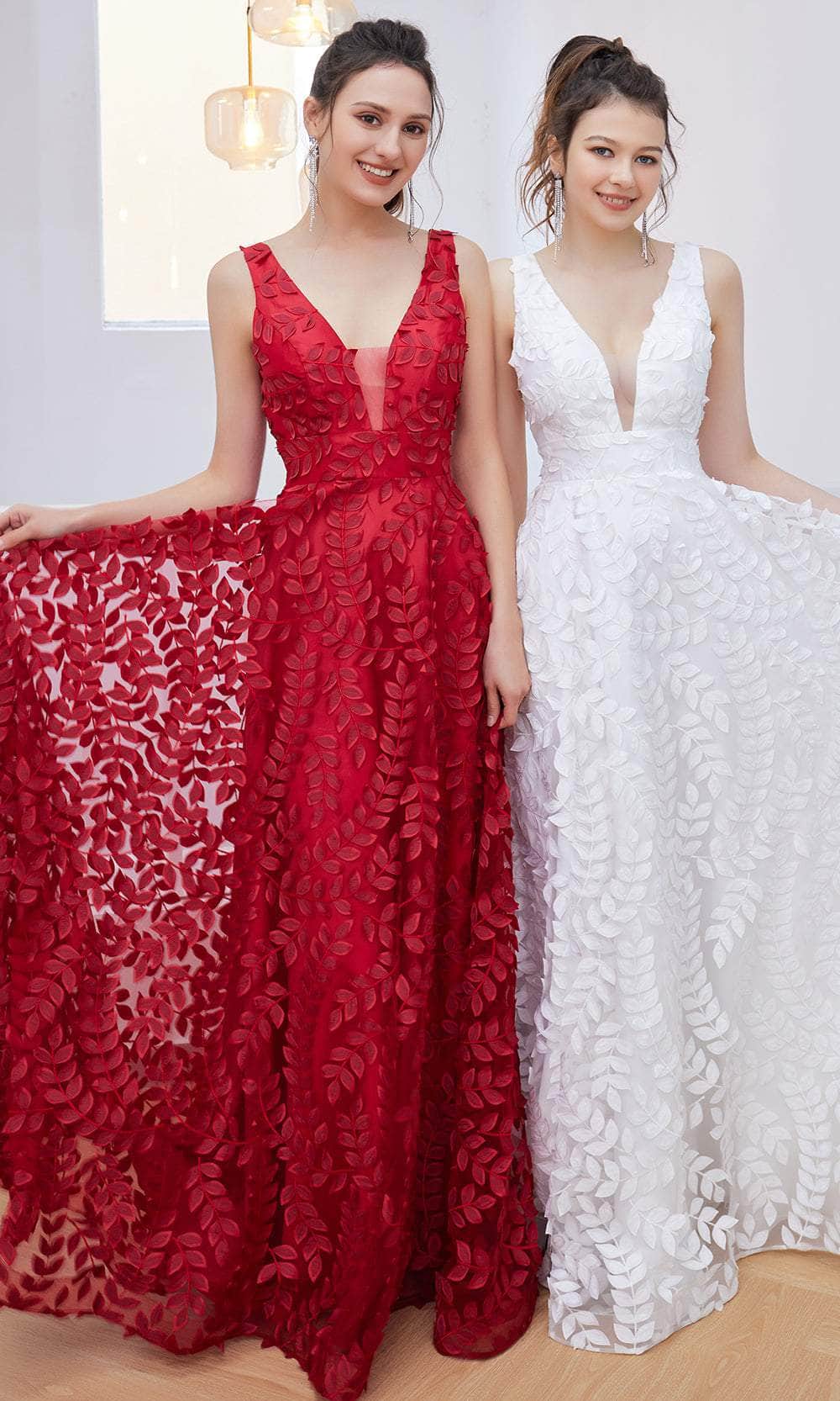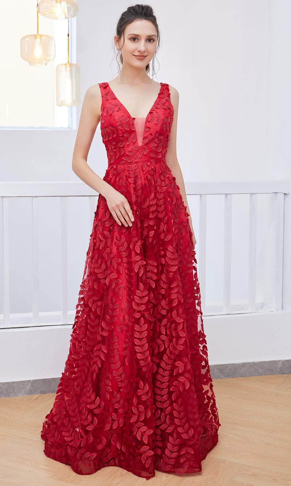 When you walk with refinement while wearing this Jadore J21038, captivate and amaze the crowd. This gorgeous lace dress is expertly adorned with leaf applique. It has a sleeveless bodice with a plunging V-neckline accented with a sheer panel in the bust. The open back is secured with a center zipper closure. The skirt parades in an A-line silhouette and finishes in a full-length hem. This masterpiece by Jadore is ideal for its distinctive style and impeccable fit. Models are wearing Ivory, Red and Tea Rose colors.