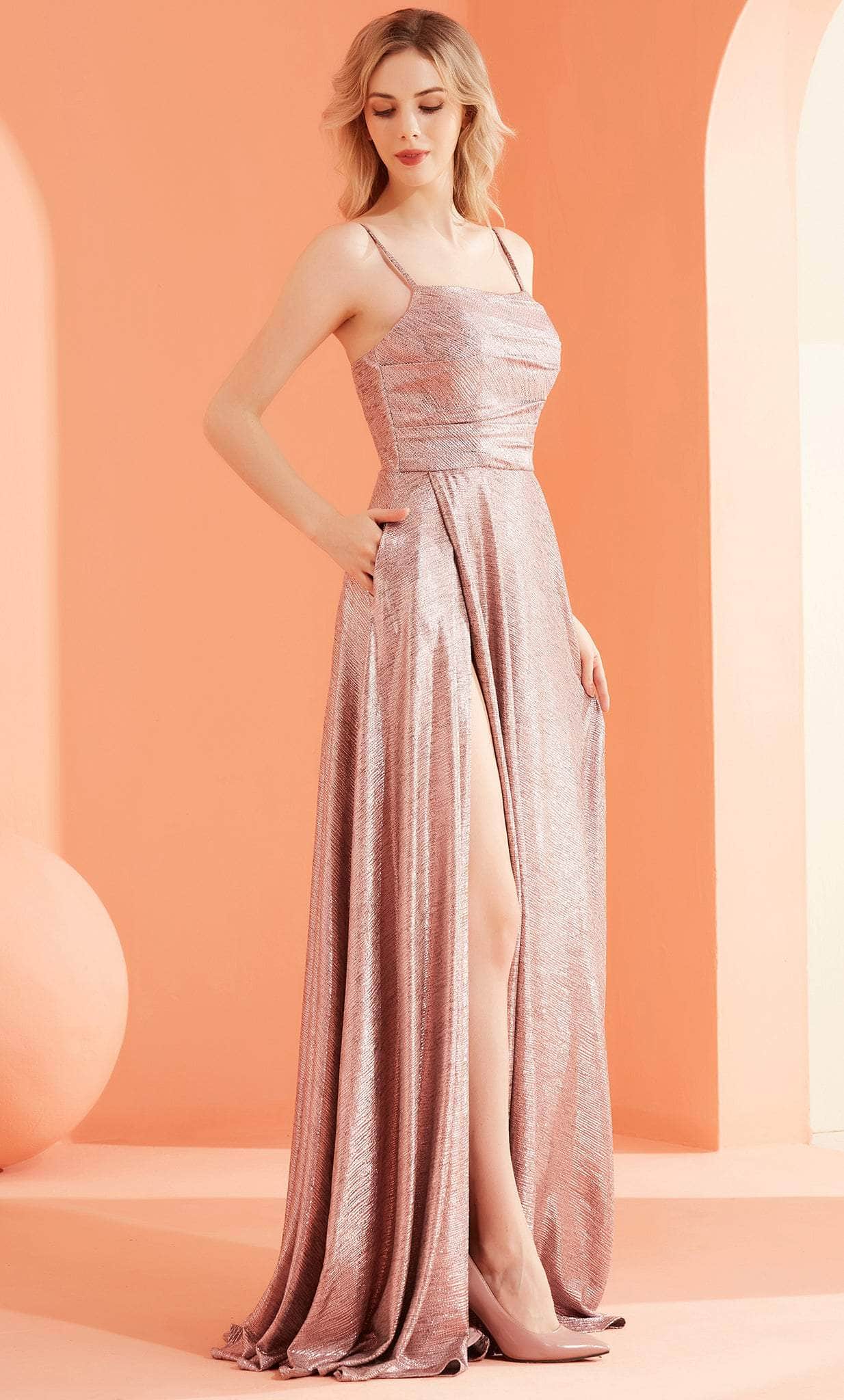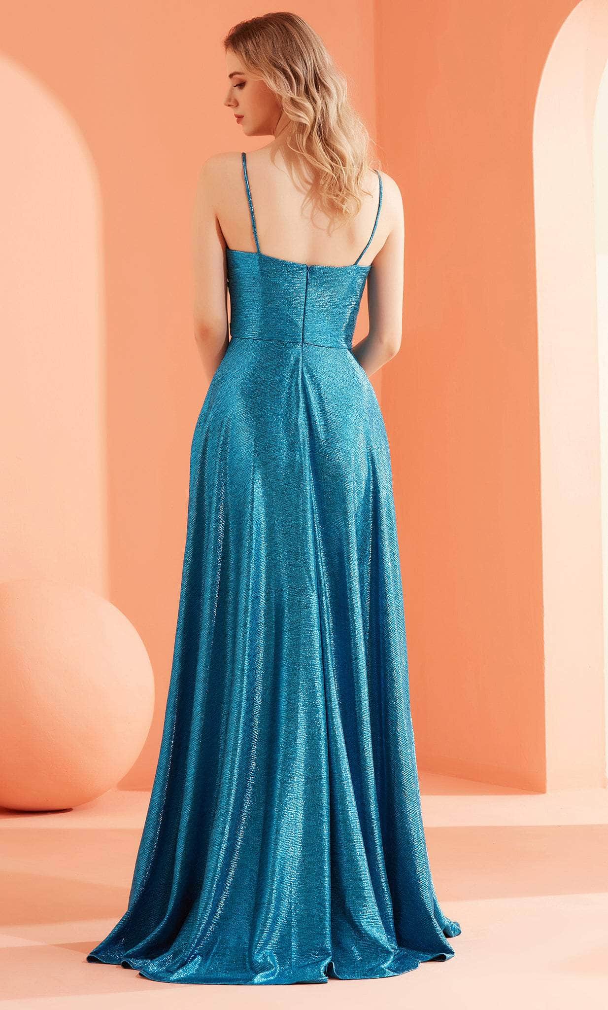 Explore a style that is romantic and alluring in this J'Adore Dresses J22031 creation. This dress is crafted to perfection with opulent glittery metallic fabric, and it has a sleeveless fitted bodice with a straight-across neckline. Additionally, it has a mid open back with a concealed zipper. From the cinched waistline, an A-line skirt lends an air of refined elegance. The outfit is finished off with a side pocket and flowing train! Radiate class and poise as you dance all night long in this alluring J'Adore Dresses J22031 masterpiece. Models are wearing Pink, Very Peri, and Teal colors.