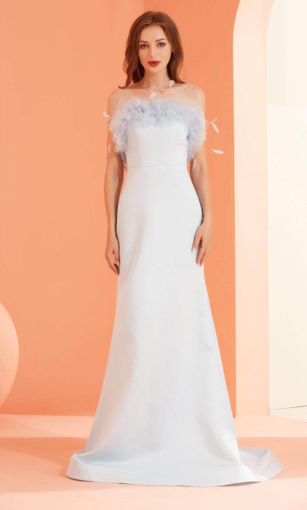 Optimize the attraction of your special event in this alluring dress by J'Adore Dresses J22045. Wow the crowd in this stunning masterpiece presented with no straps and organza ruffled fabric along the straight neckline. Exudes minimalistic design with the bodice extending to the trumpet silhouette. Cuts in a low back and closes using a zipper for security. This gown from J'Adore Dresses J22045 is your excellent pick when you dare to look stylishly spectacular! Model is wearing Baby Blue color.