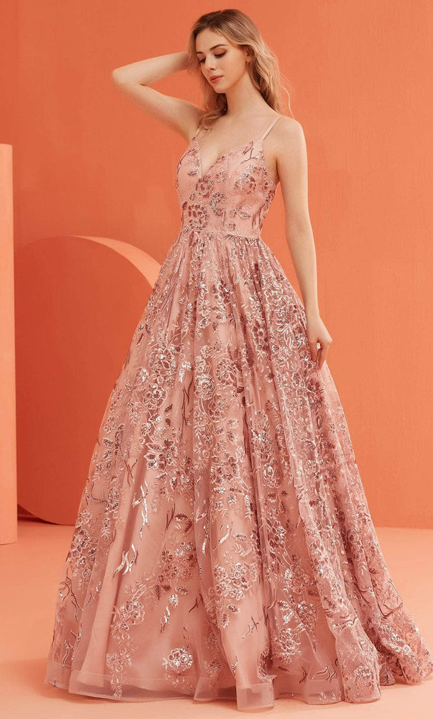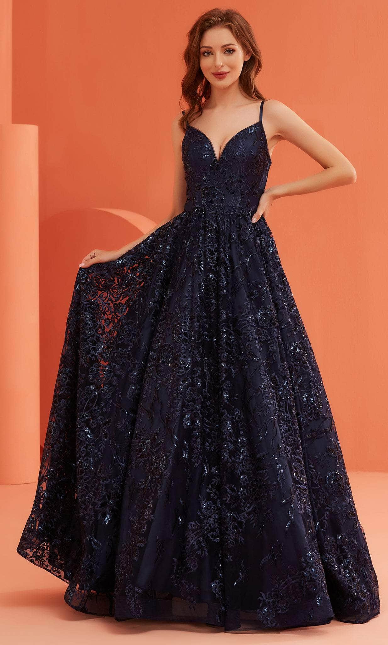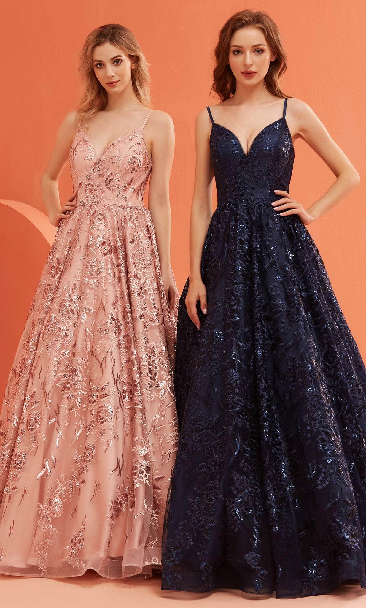 This gown by J'Adore Dresses J22047 will make you look stunning at your next formal event. A sleeveless bodice and plunging V-neckline crafted with clean seams brandishes this fabulous gown. Spaghetti straps lead to an open back with a lace-up tie for a perfect fit. The skirt cascades gorgeously to the floor parades in an A-line silhouette. As you walk into your special event wearing this creatively romantic gown from J'Adore Dresses J22047, expect to turn heads. Models are wearing Dusty Pink, Ivory and Navy colors.