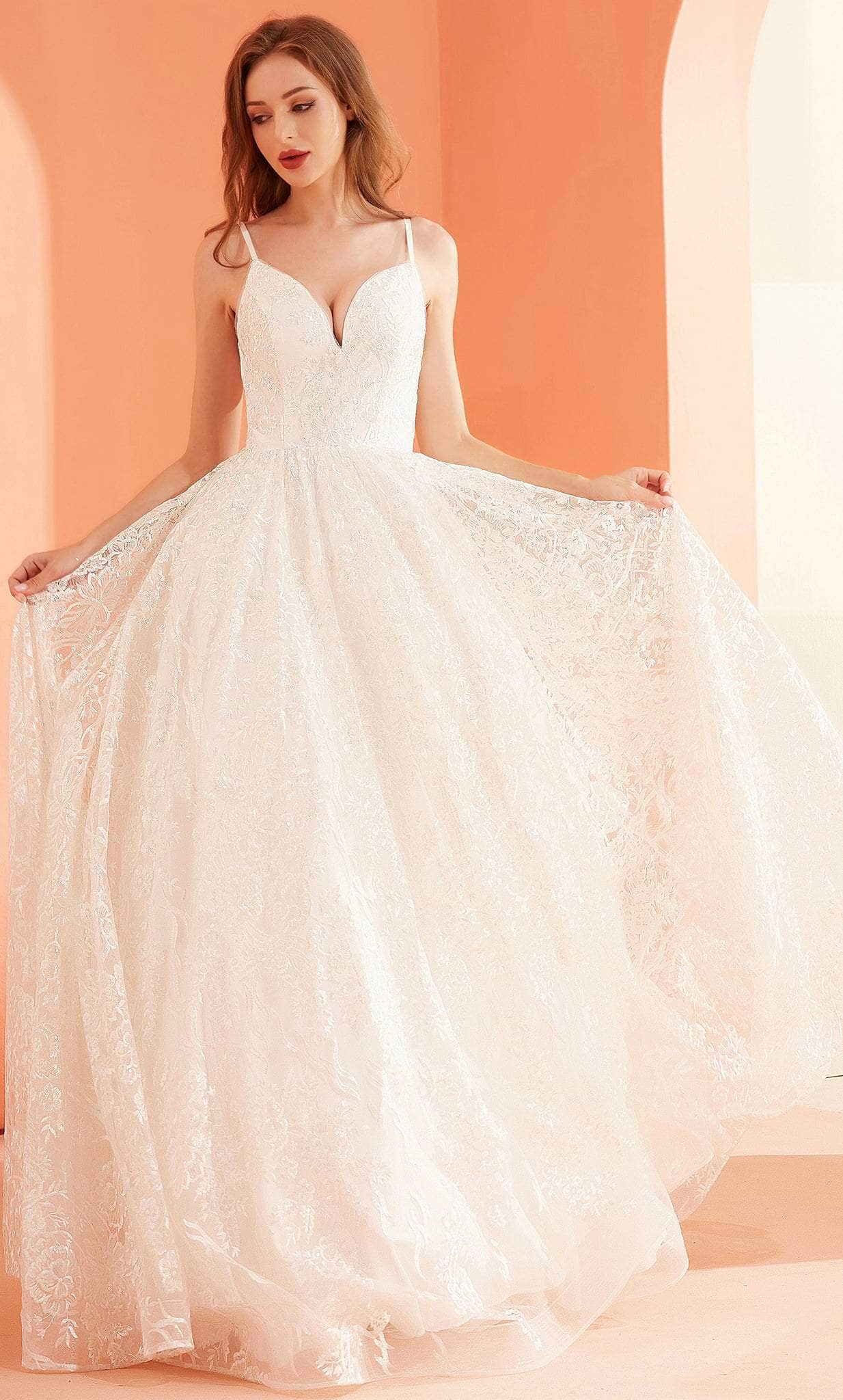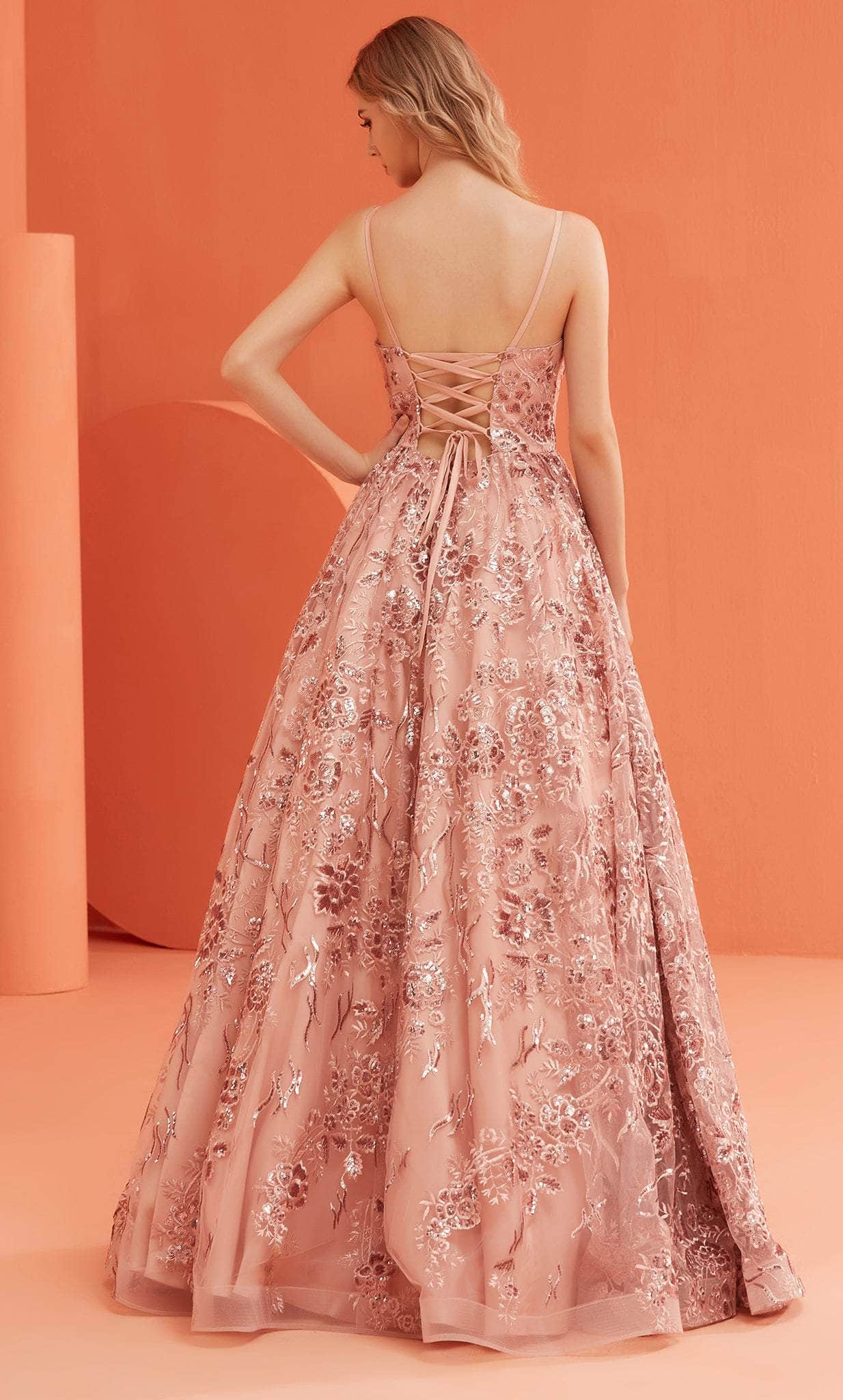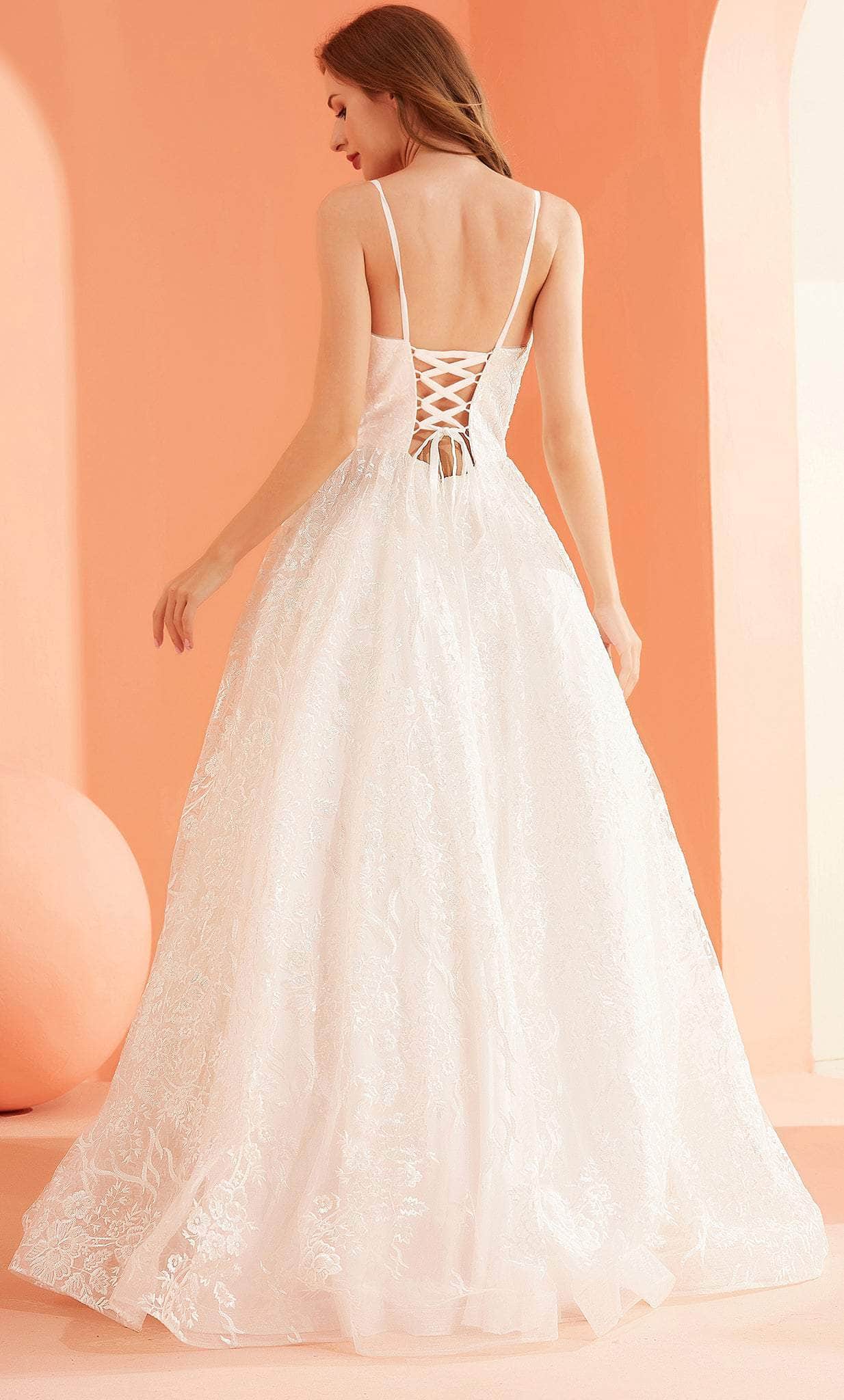 This gown by J'Adore Dresses J22047 will make you look stunning at your next formal event. A sleeveless bodice and plunging V-neckline crafted with clean seams brandishes this fabulous gown. Spaghetti straps lead to an open back with a lace-up tie for a perfect fit. The skirt cascades gorgeously to the floor parades in an A-line silhouette. As you walk into your special event wearing this creatively romantic gown from J'Adore Dresses J22047, expect to turn heads. Models are wearing Dusty Pink, Ivory and Navy colors.