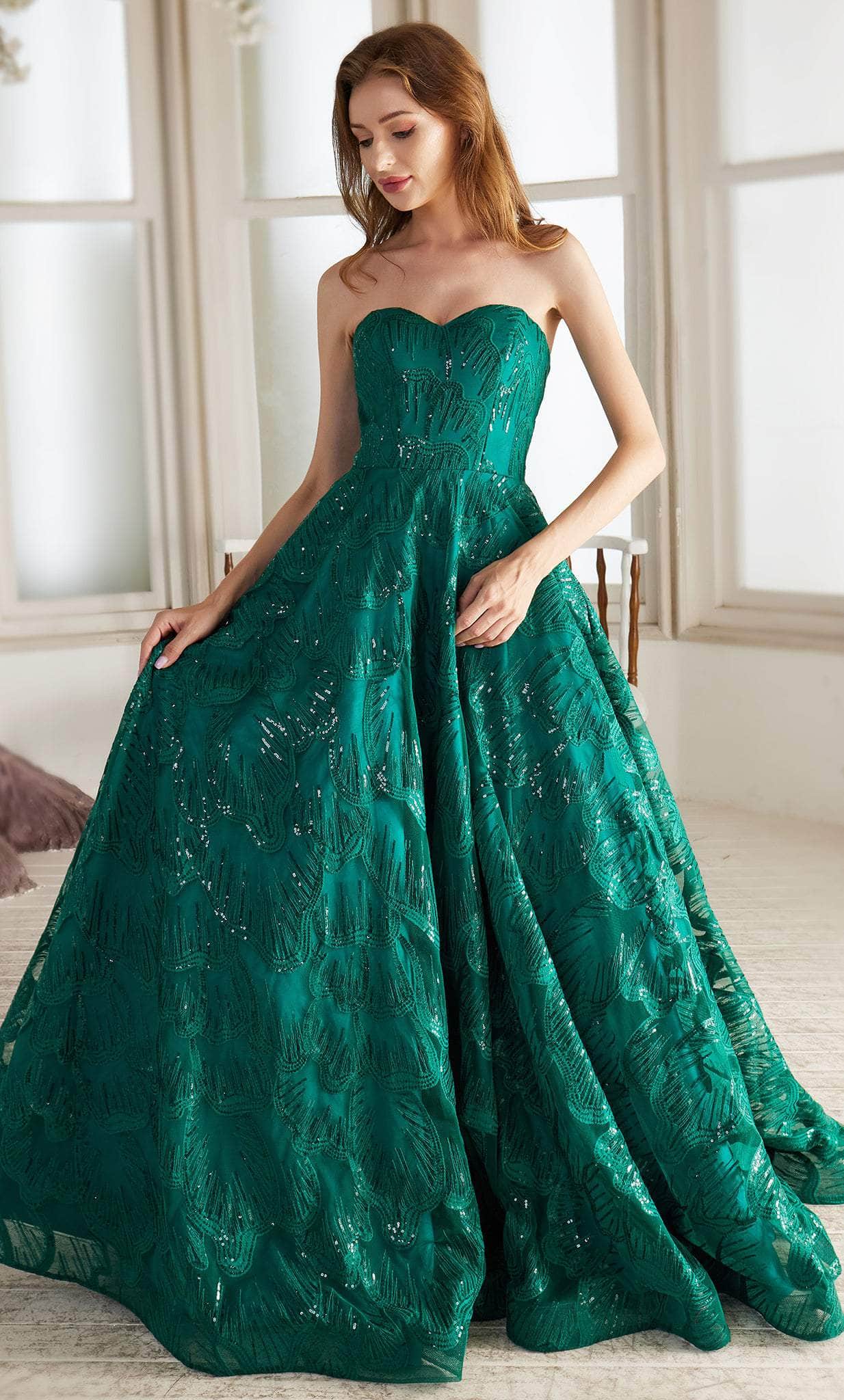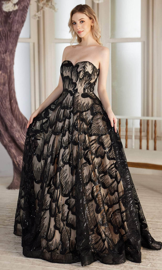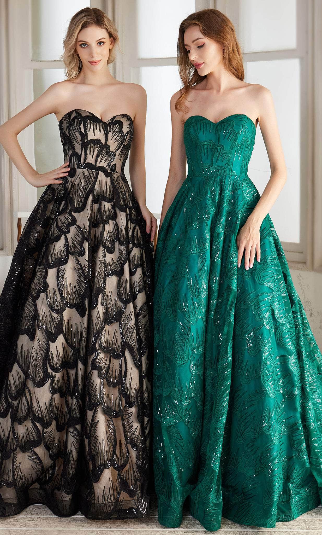You will be the epitome of feminine flair in this glamorous J'Adore Dresses J22049 creation. This curve-hugging stunner offers a strapless bodice crowned with a sweetheart neckline. A whimsical glitter detailing dazzles throughout the entirety of the gown, giving you the most effortless sparkle. The full-length skirt parades in an A-line silhouette with a sweep train finish that brings a dramatic touch. In this J'Adore Dresses J22049 creation, you will be the center of attention. Models are wearing Black Nude, Emerald, and Ivory colors.