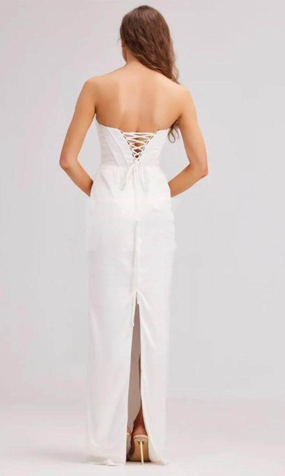 Details: Strapless, Beaded Bust, Corset Bodice, Lace-Up Tie, Back Slit