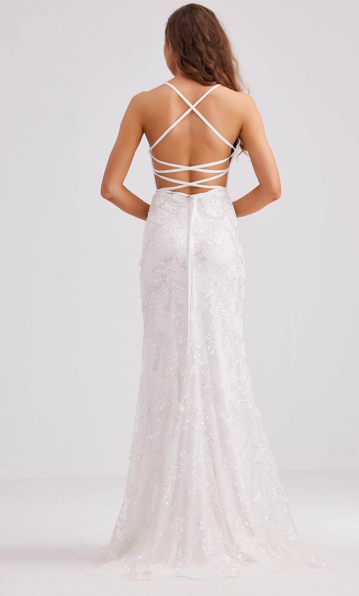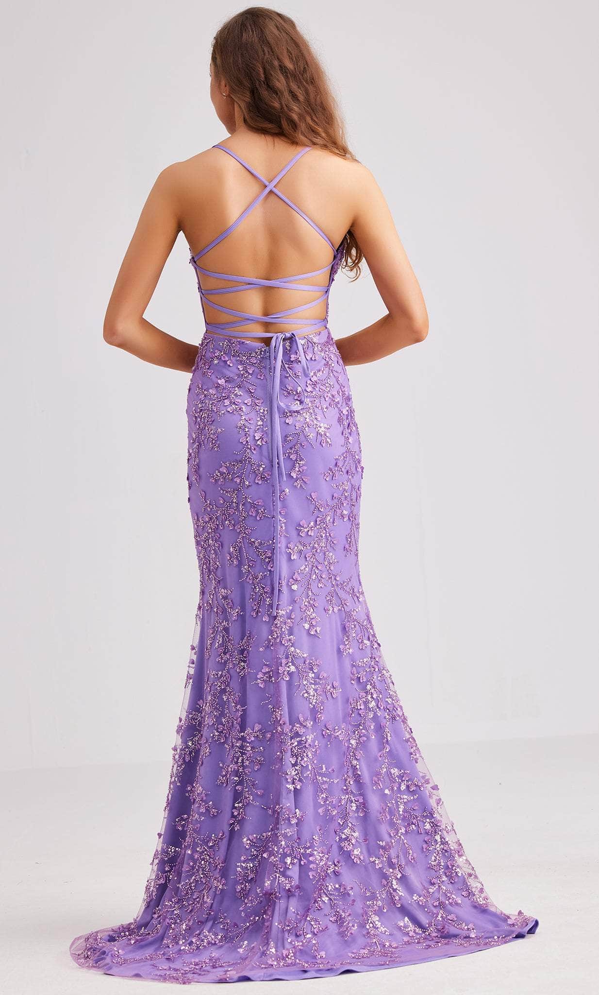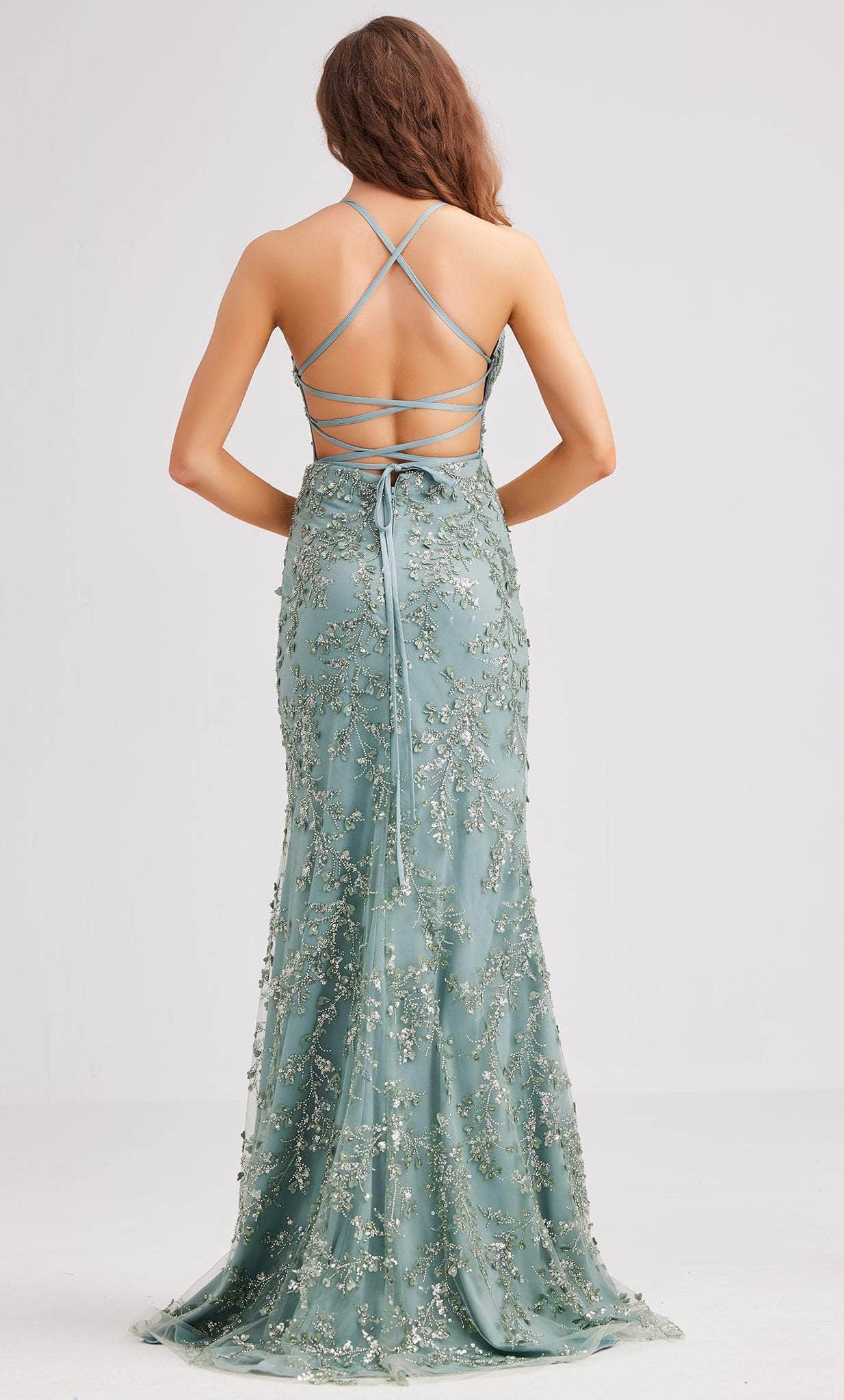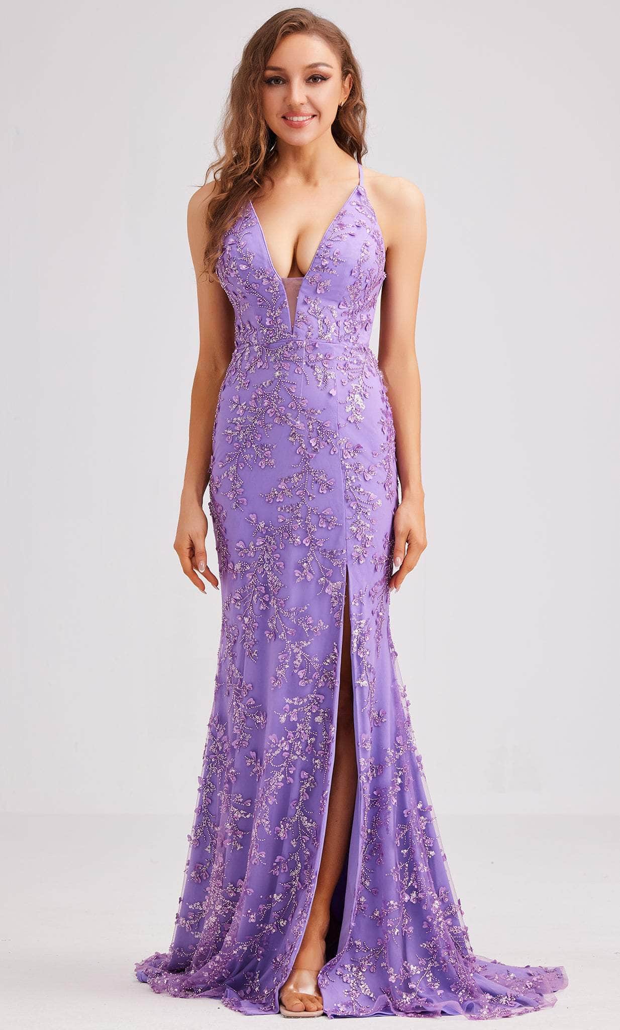 Indulge in appreciative glances when you flaunt this exquisite J'Adore Dresses J23036 creation. Capturing the contour of the female form with those sculpting lines, this gown parades beadwork and dainty floral lace appliques. This ensemble also showcases a plunging v-neckline with an illusion inset. Stringed with spaghetti straps and designed with a lace up accent on an open back, the skirt streams beautifully into a mermaid silhouette with a high slit and a sweeping denouement. Be adored by many at your sumptuous event in this mesmerizing J'Adore Dresses J23036 masterpiece. Models are wearing the Ivory, Purple, and Sage colors.