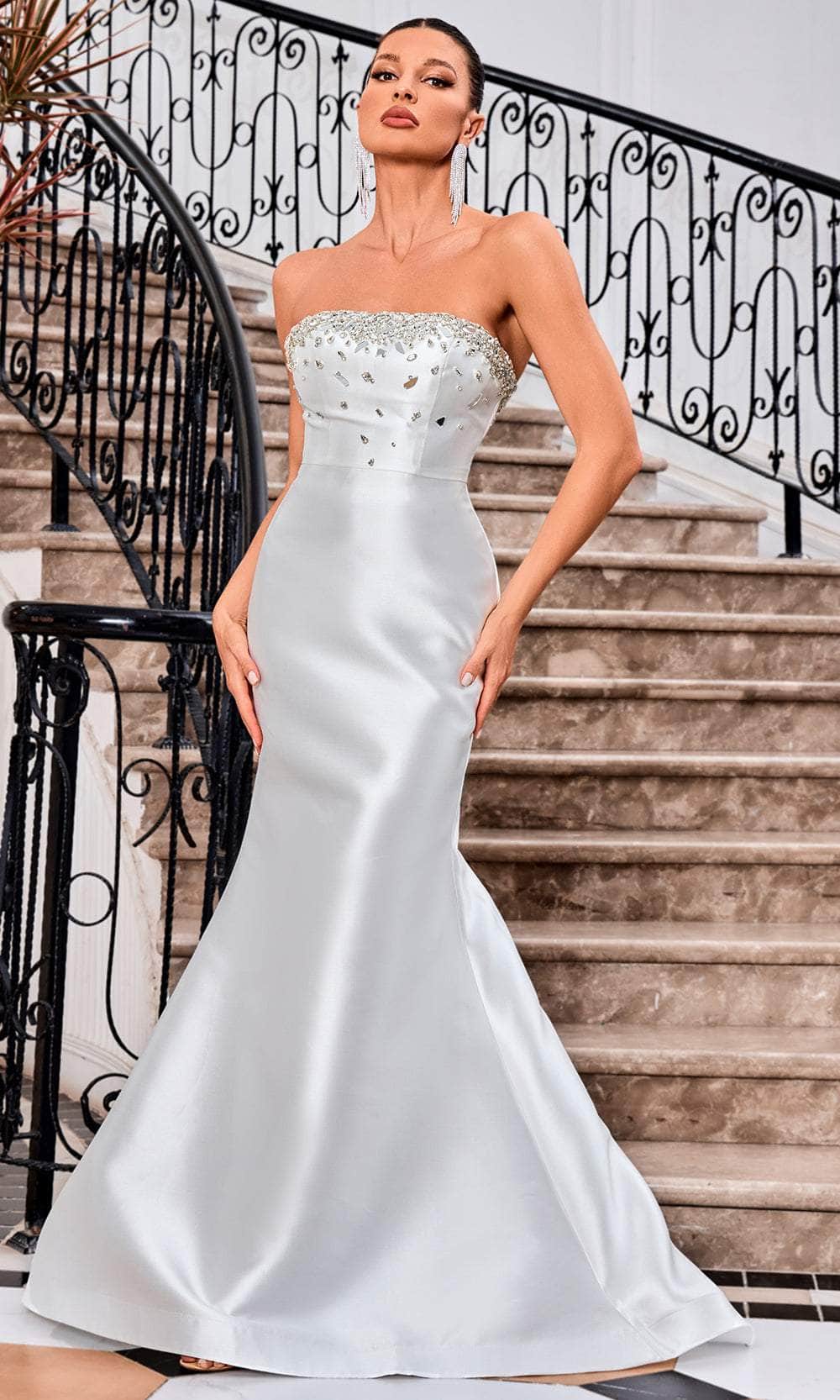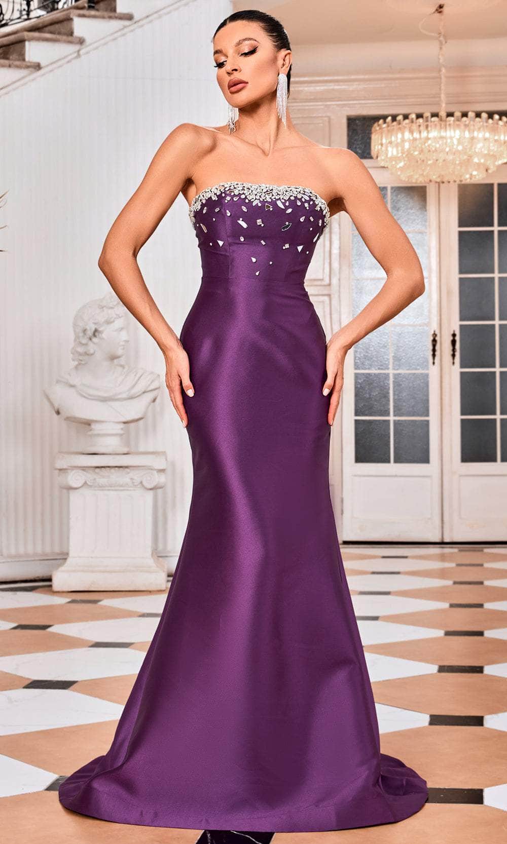 Effortlessly emanate impeccable elegance in the Adore Dresses J24010 creation, a gown that exudes sophistication and captivates effortlessly. Crafted from exquisite Mikado fabric, its strapless silhouette embodies timeless charm. Adorned with faceted stones and cut glass, it emits an understated opulence. With a midrise back, concealed zipper closure, and a fitted waist, it guarantees a flawless and comfortable fit. The mermaid skirt is sculpted gracefully, culminating in a sweeping train that leaves a lasting impression. Radiate like a radiant beam of light as all eyes are irresistibly drawn to you in this enchanting Adore Dresses J24010 masterpiece. Models are wearing the Black, Ivory, and Purple colors.