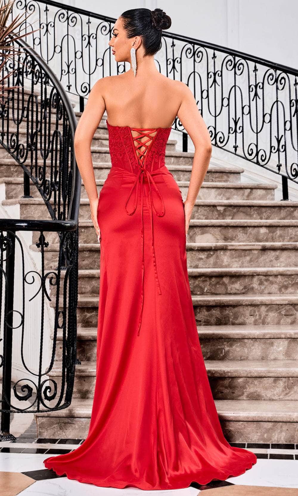 The Adore Dresses J24014 gown is your perfect choice for making a statement at your special event. Its strapless design emanates classic elegance, and the lace details on the corset bodice add a delicate touch of artistry. The lace-up back ensures a flawless fit, accentuating the nipped waist. Crafted in a satin mermaid silhouette, the gown boasts a draping skirt that flows with grace. A high slit adds a hint of allure, while the sweeping train provides a regal finishing touch, ensuring you make a memorable entrance and statement at your occasion. Make magic in this refined style that would make you stand out in this Adore Dresses J24014 masterpiece. Models are wearing the Navy, Red, and Ivory colors.