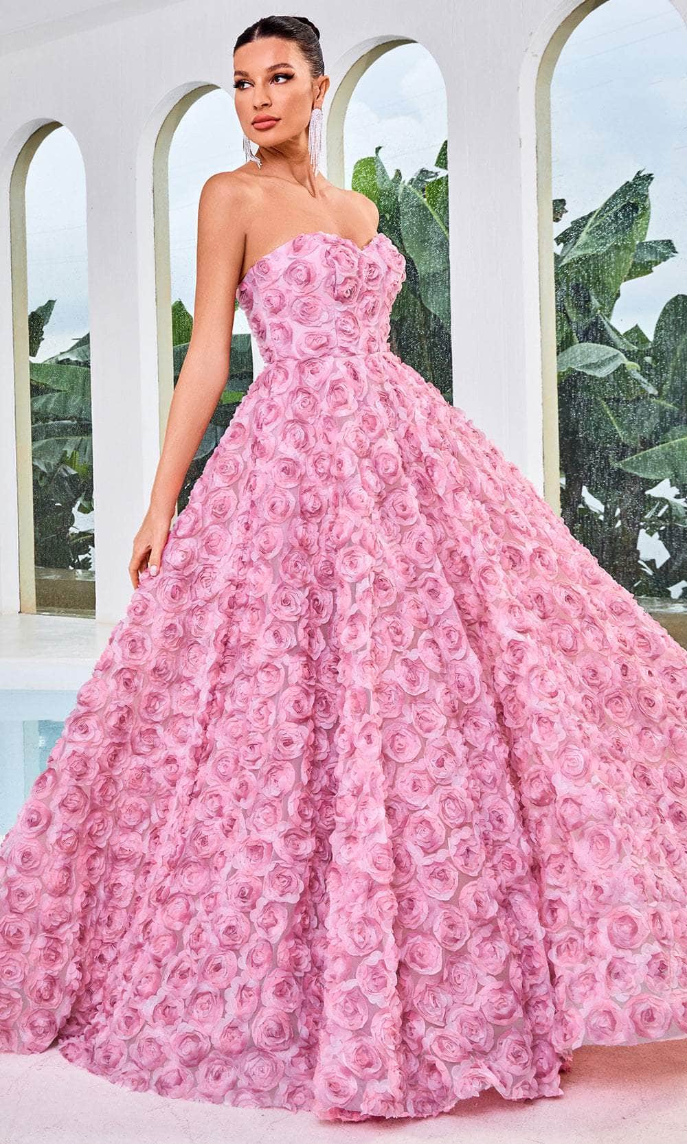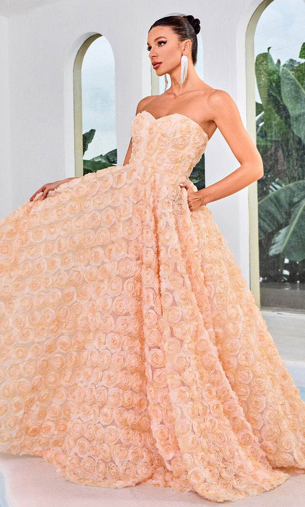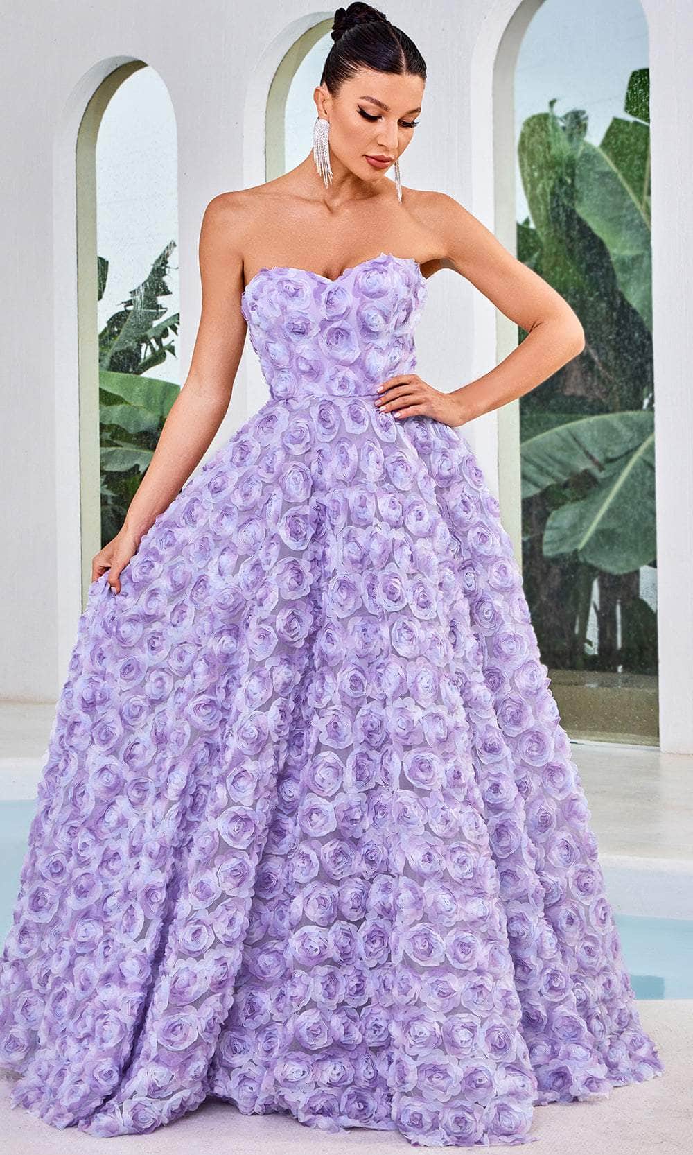 Adorn yourself in an utterly feminine style in this Adore Dresses J24026 creation. Designed with tailoring lines on a perfectly tailored silhouette, this gown reveals 3d floral texture allover its length. This gown has a strapless bodice with a sweetheart neckline coupled with a midrise styled back and a concealed zipper closure. The ethereal skirt elegantly shapes an A-line silhouette that gracefully concludes with a sweeping denouement. Reveal your inner goddess in the expertly crafted Adore Dresses J24026 masterpiece. Models are wearing the Lavender, Orange Peach, and Misty Rose colors.