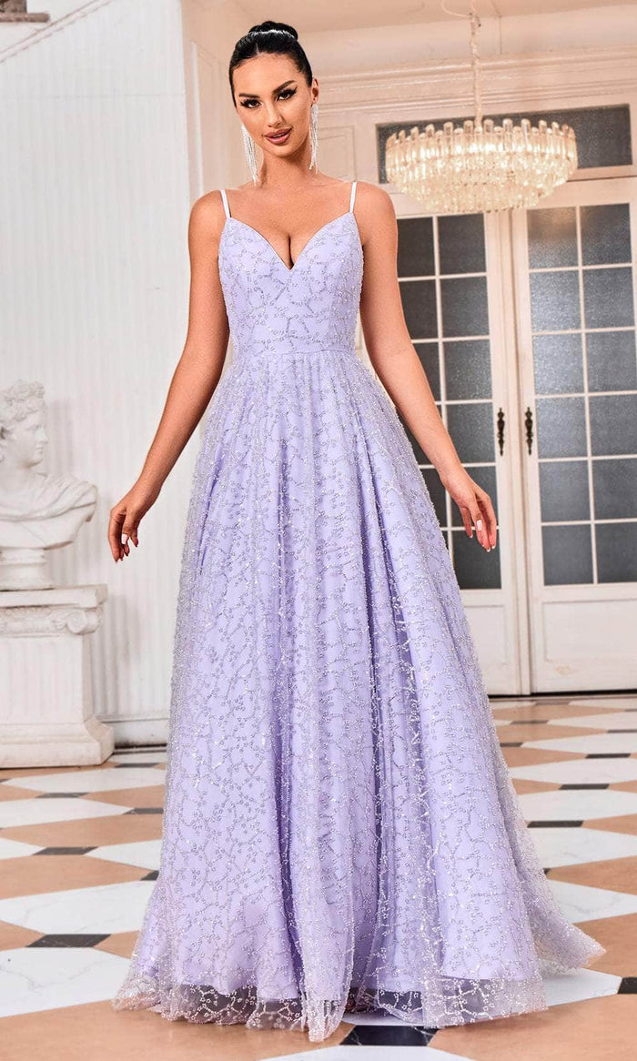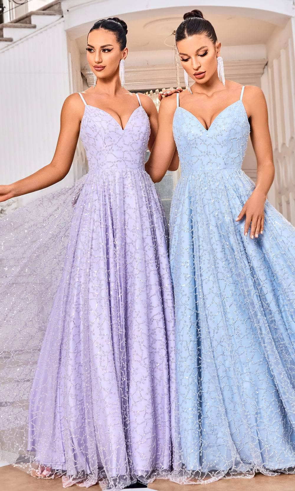 Flourish a stunning magnificence befitting a goddess in this Adore Dresses J24032 creation. Crafted with tailoring lines on bead embroidered tulle silhouette, this gown has a contoured v-neckline with spaghetti straps. Revealing a corset styled back and a fitted bodice, this gown reveals a nipped waist with an opulently embellished skirt as it forms an A-line design with a floor length hem. Dare to show off your stellar style in this opulent Adore Dresses J24032 masterpiece. Models are wearing the Light Blue, Lavender, and Lipstick colors.