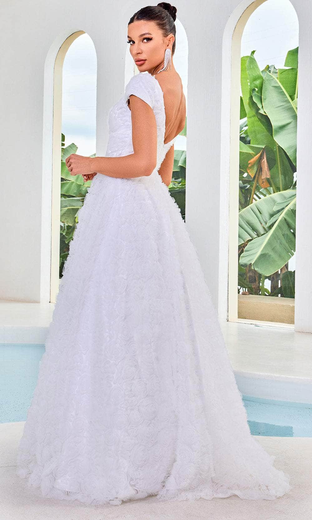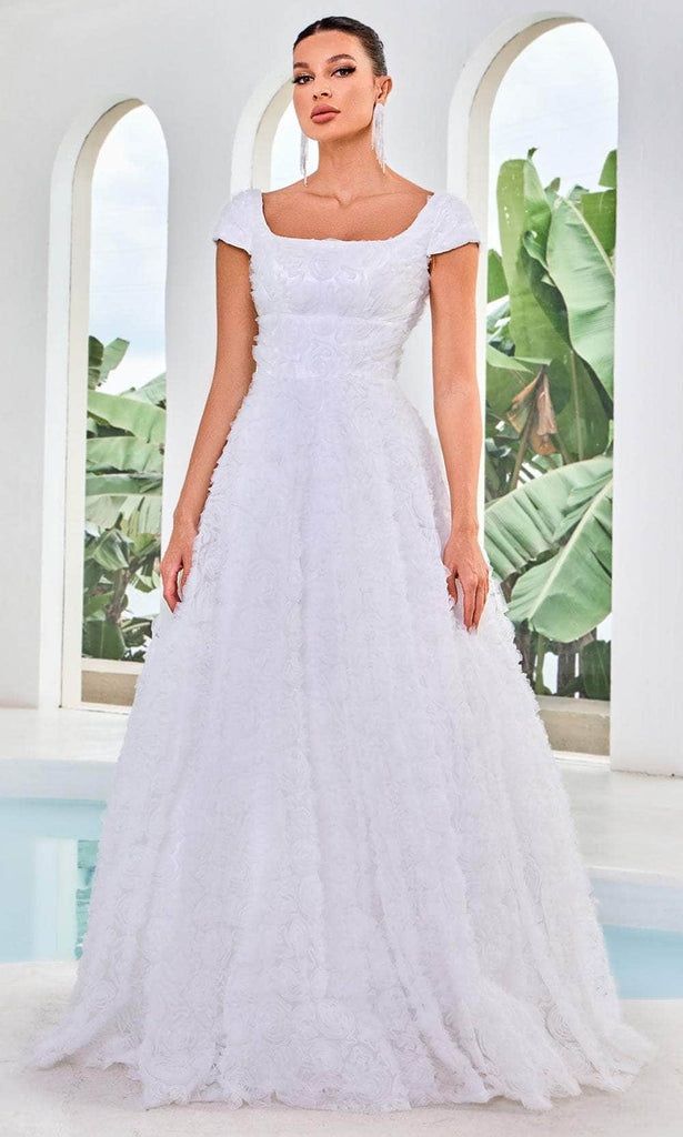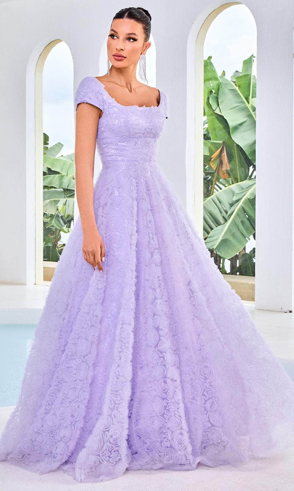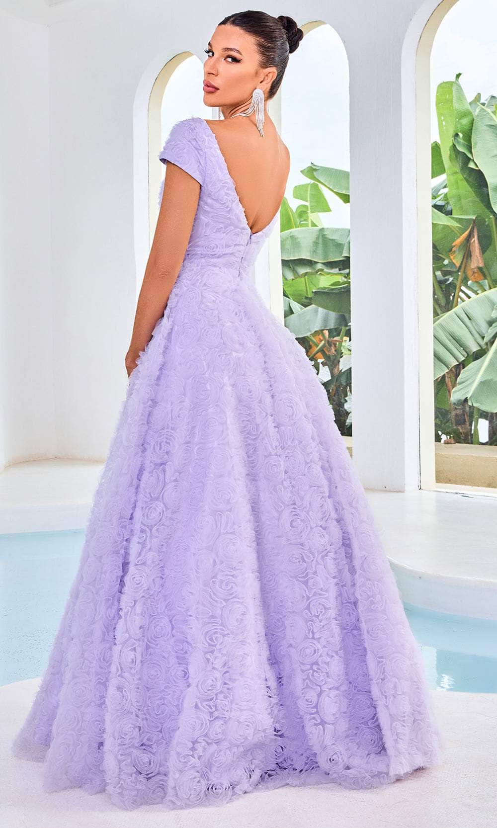 Leave a lasting impression at any event in this Jadore Dresses J24044 creation. This gown is a vision of beauty and charm, which is fully decorated with ruffled floral appliques. It also shows off a square neckline, wide waistband, and cap sleeves. Skin is revealed at the back by its midrise v-shaped cut, while being fastened by center zipper closure. The skirt sculpts a full length ballgown silhouette that adds a touch of grandeur to your look. This Jadore Dresses J24044 creates a truly magical evening. Models are wearing Ivory, Mint, and Lavender colors.