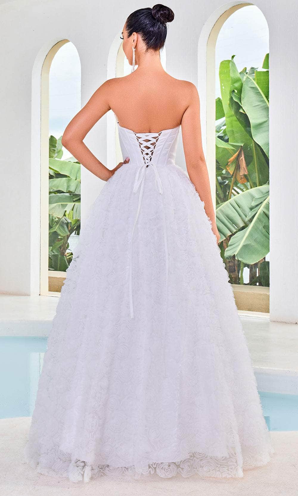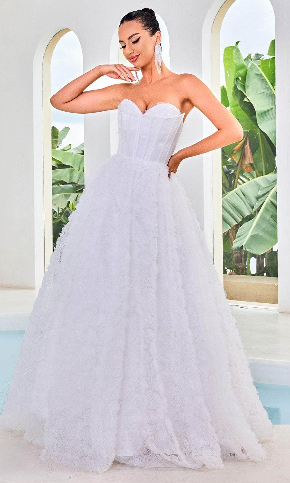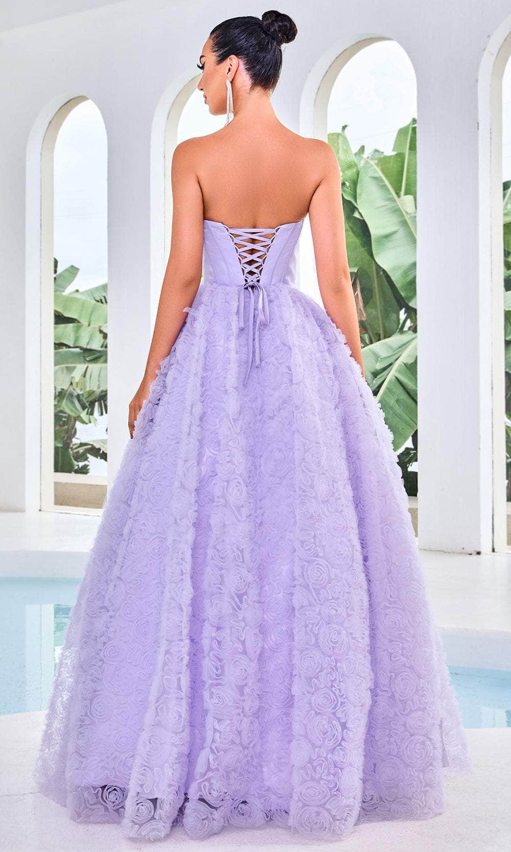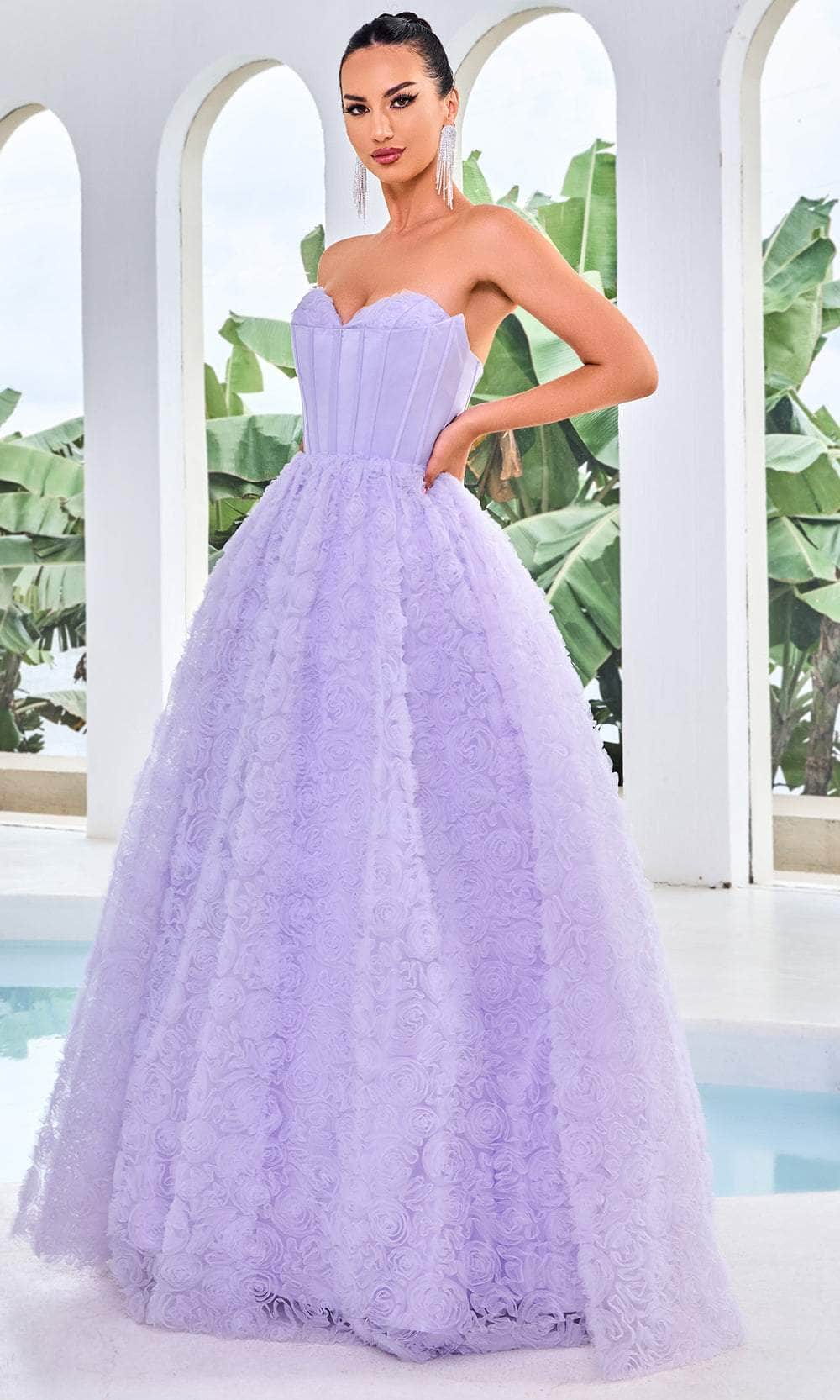 Make magic in this fantastic creation from Jadore Dresses J24045. Decorated with ruffle floral appliques, this strapless gown exudes a feminine charm that captivates from every angle. It consists of a corset bodice with exposed boning that hugs your curves for a flattering fit. The sweetheart neckline pairs perfectly with a midrise lace-up back. Lastly, the skirt moulds an A-line silhouette that enchantingly flows to the floor length hemline. Turn heads instantly when you wear this Jadore Dresses J24045 masterpiece. Models are wearing Ivory, Mint, and Lavender colors.