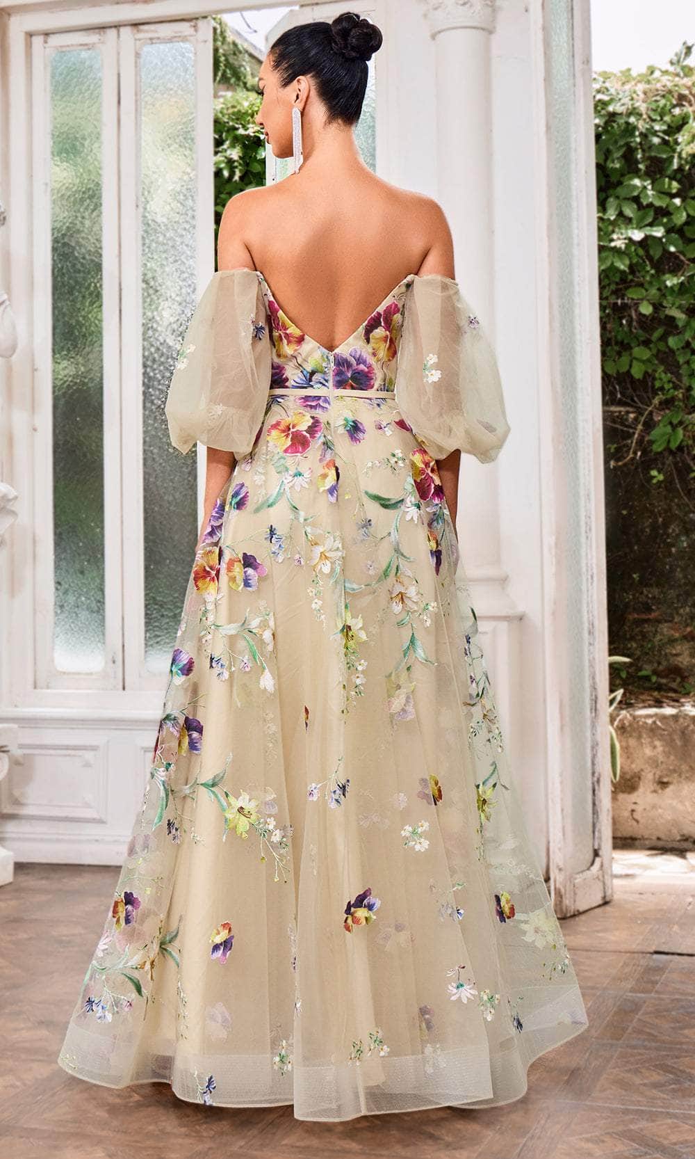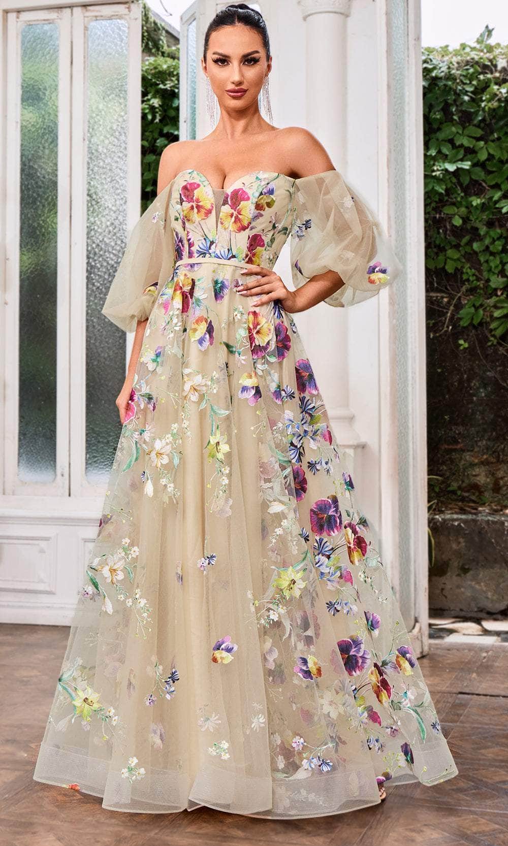 J'Adore Dresses J24047 - Puff Sleeve Floral Evening Gown