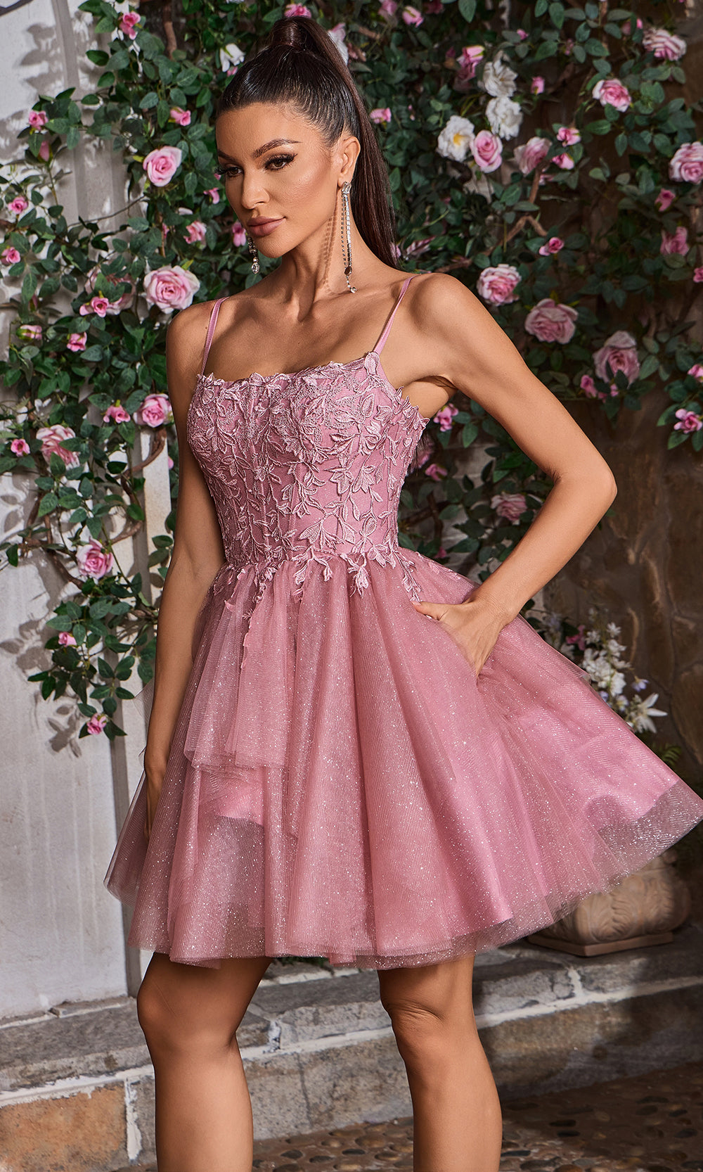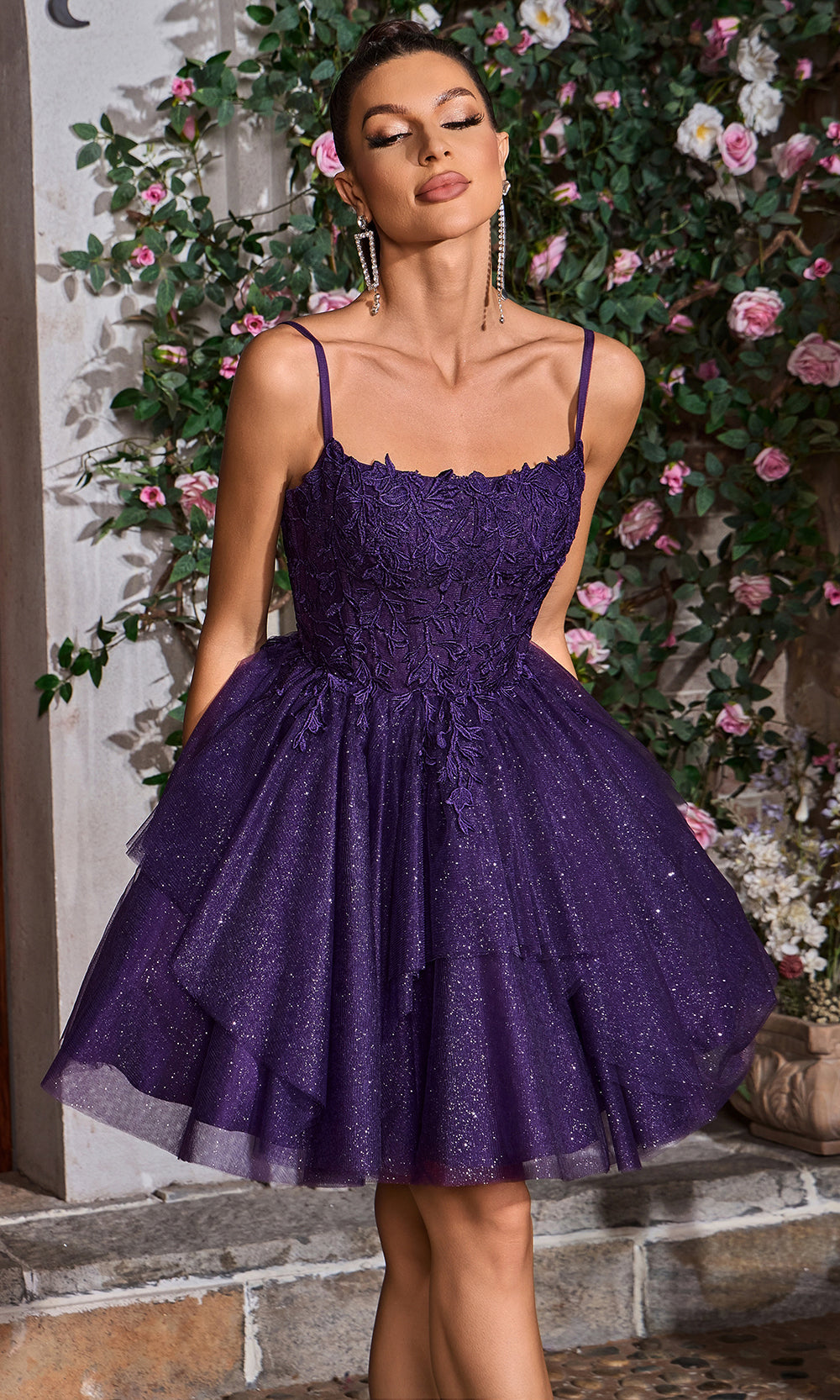Whimsical and full of detail, this captivating Jadore Dresses J26071 short A-line embraces elegance with every thread. Featuring a sleeveless bodice richly adorned with 3D floral embroidery, the dress brings texture and depth to the look. Layers of sparkle tulle form a voluminous skirt that adds graceful movement and shine with each step. Delicate spaghetti straps frame the square neckline for a light and airy finish. Perfect for special celebrations or standout occasions, the Jadore Dresses J26071 is an exquisite expression of charm and festive glamour. Models are wearing Purple, Royal, and Ice Pink colors.