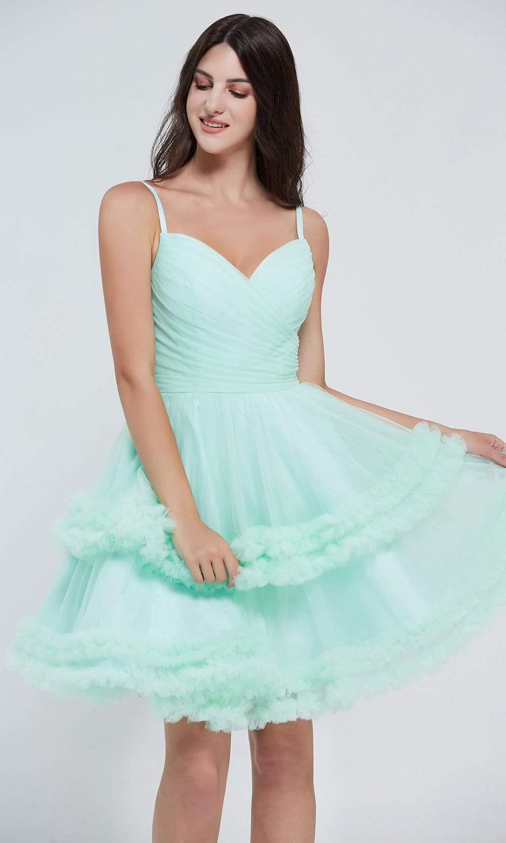 This enchanting J'Adore J20080 short length gown is sure to make you the center of everyones attention. Starting with the sweetheart neckline and spaghetti strap that descend to a gorgeous pleated bodice that can accentuate your upper body features. This dress is even more captivatingly magical with the tulle skirt. Experience the outstanding effect in this J'Adore creation