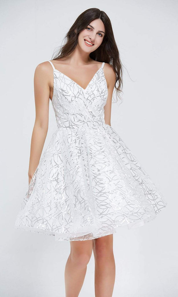 | Details: | Sleeveless, Spaghetti straps, Tiny sequins, Mid back, Back zipper |