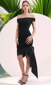 Make a stunning impression and turn all heads in the Janique 2403 dress. This minidress is a masterpiece of boldness and beauty, with its immaculate design that sets it apart from the rest. The off-shoulder neckline and the asymmetric hem with a bow add charm and flair to this dress, which is expertly tailored to highlight your curves. Be the epitome of drama and elegance in this couture creation by Janique 2403. Model is wearing the Black color.