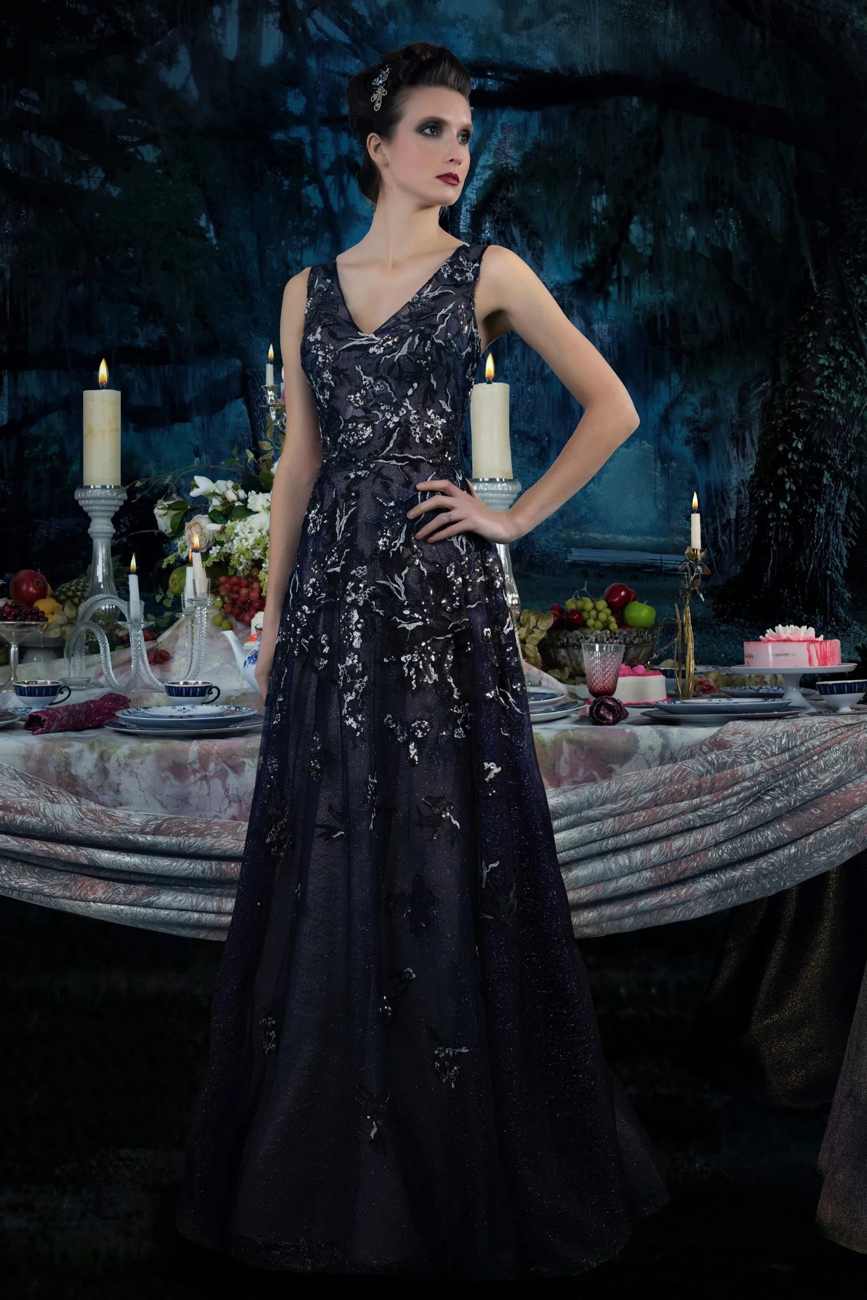 Captivate everyone’s attention in this stunning Janique 71122 evening gown. This sleeveless, embroidered lace dress features exquisite embellishments, while the A-line skirt gracefully flows to a full-length hem. Radiate elegance and draw admiration from the crowd with this radiant Janique design. Dress is pictured in Navy color.