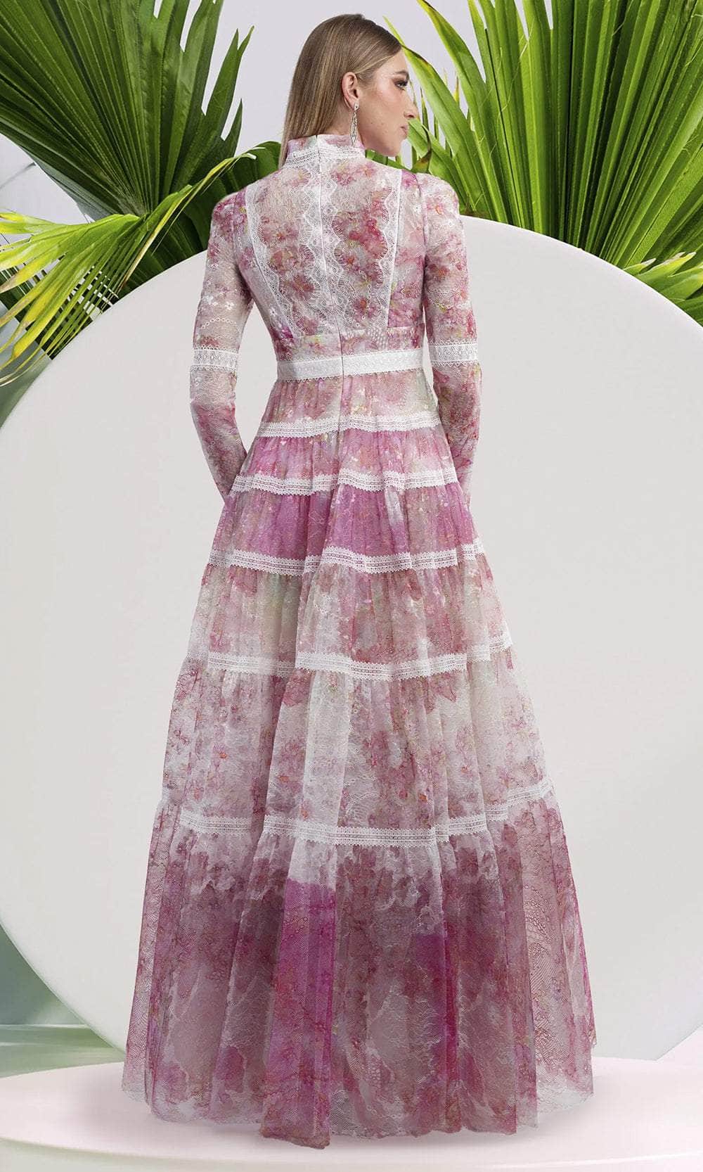 | Details: | Sheer Long Sleeves, Lace, Ribbon Accent, Lace Waistband, Pleated Paneled Skirt, Full Back, Back Zipper Closure |
