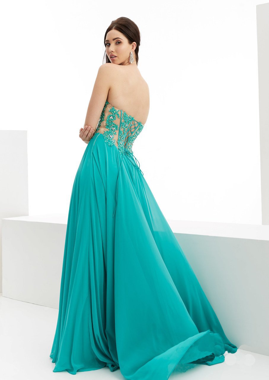 | Details: | Strapless, Full-length skirt, Corset boning, Lace up back, Chiffon fabric, Back zipper |